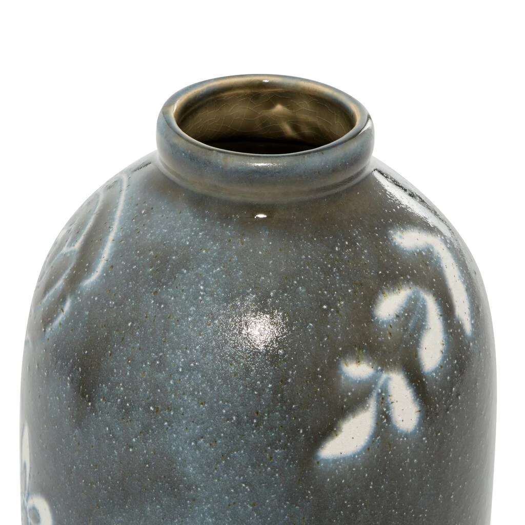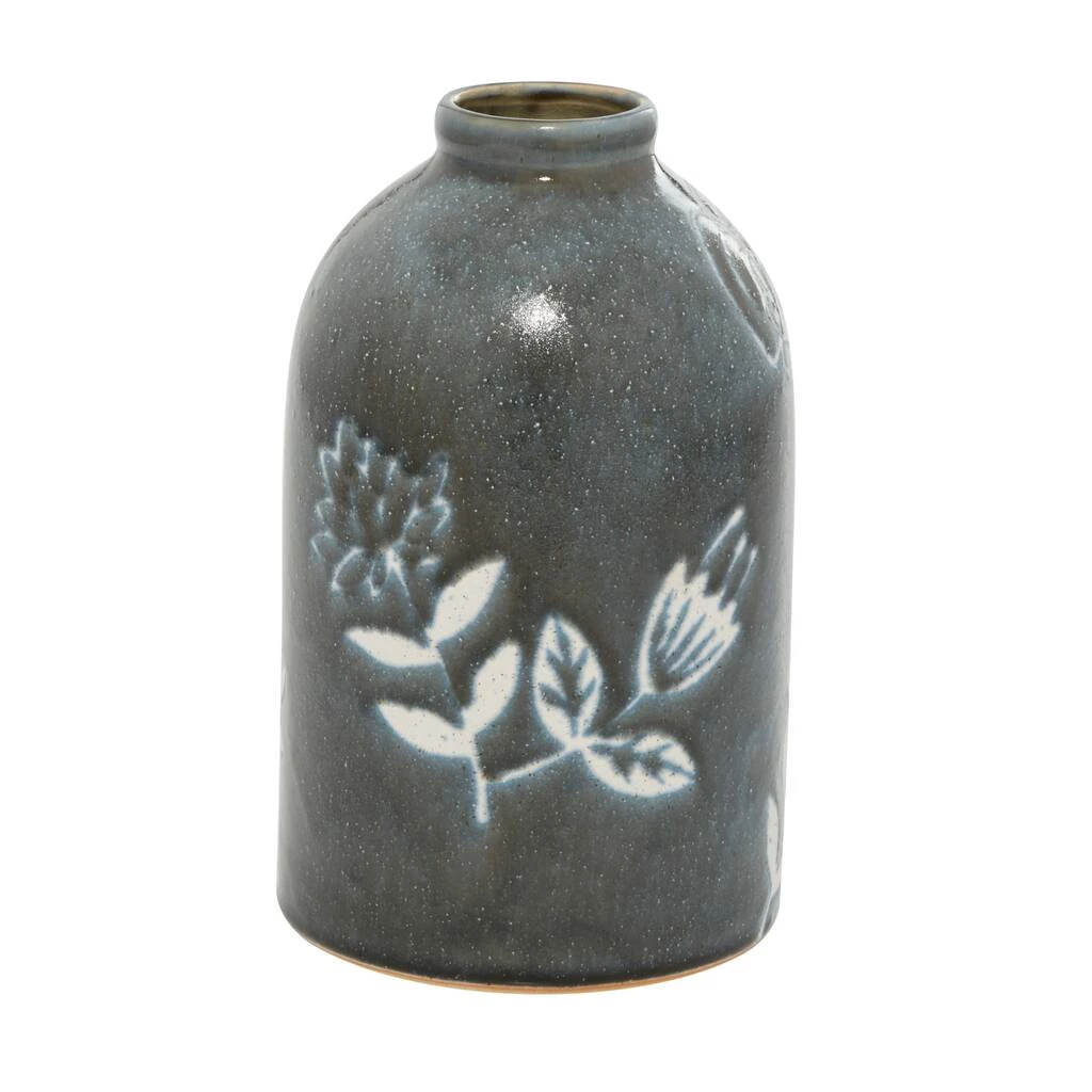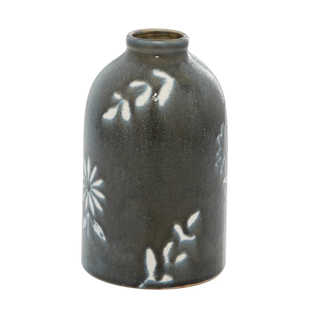 Alone or holding a single stem flower, this round ceramic vase features lovely hand-painted daisies around its tall bottle shape. The small mouth can display a small bunch of botanicals, but this decorative vase also makes for an eye-catching stand-alone accent decor centerpiece with its flower designs. The undertone throughout is a glossy, very soft black glaze that make the white flowers pop. Due to the handmade nature of this item, no two will be alike, there will be slight differences in shape, size, and color. These versatile colors with bold designs make a lovely and fun style splash in boho and eclectic homes and offices. This item ships in one carton. Suitable for indoor use only. Bud vase with fluted narrow rim opening. Modern Design.