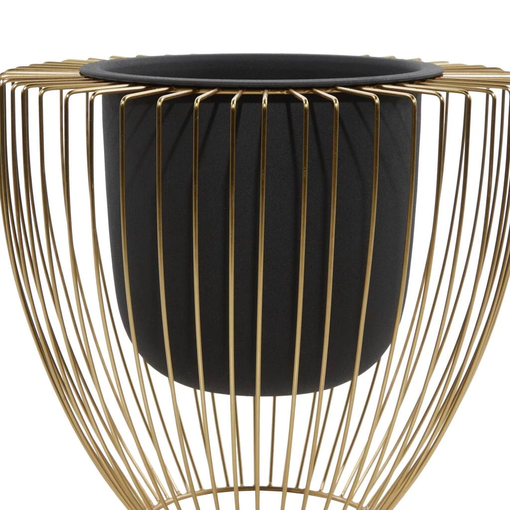 The solid construction of these vase-like gridded stands and no-drainage hole pots are made of iron material to add pizzazz to a corner of your living space. The taller planter stands 12″ tall, while the smaller one is 10″ high. Display as plant holders or corner accent pieces in modern and contemporary-themed interiors.