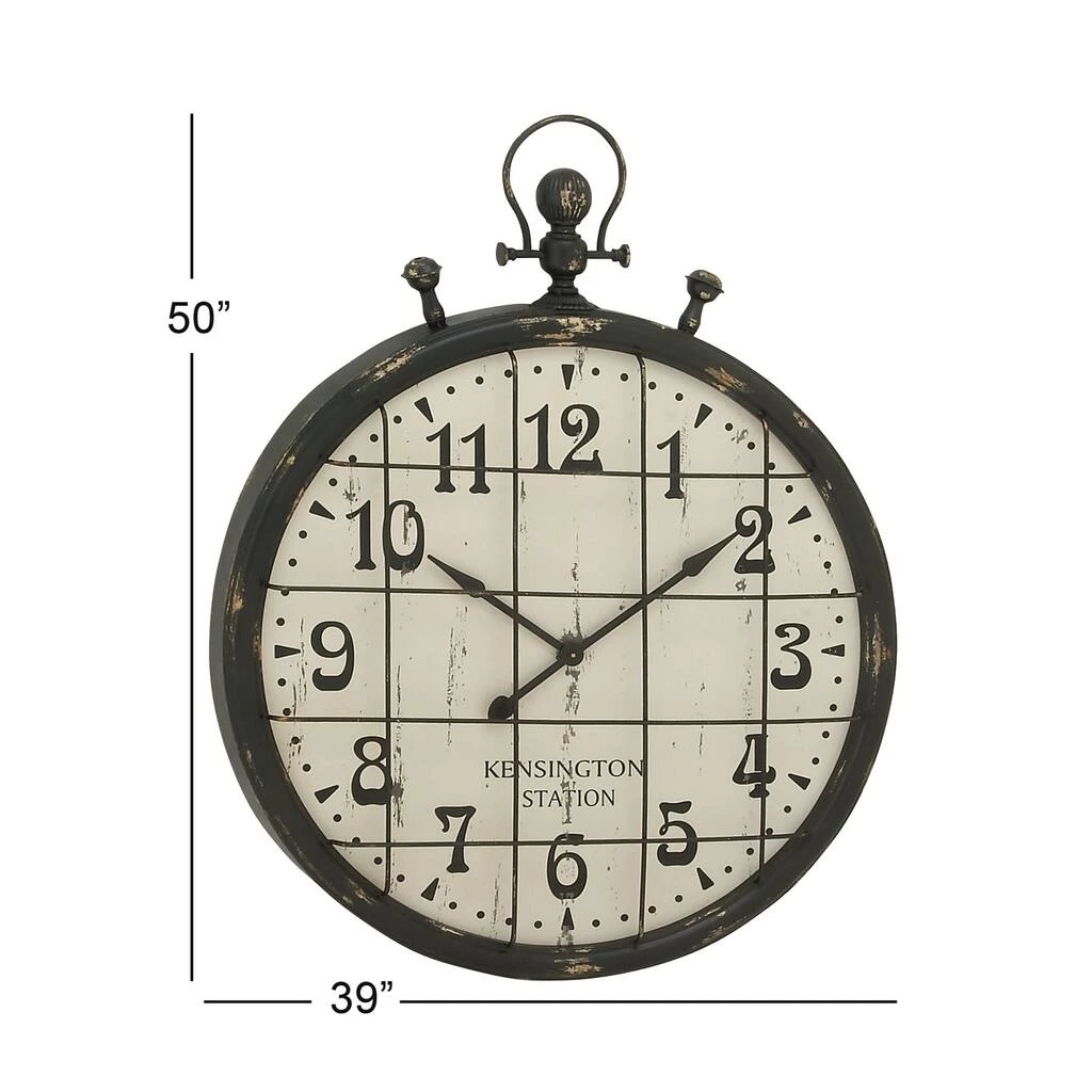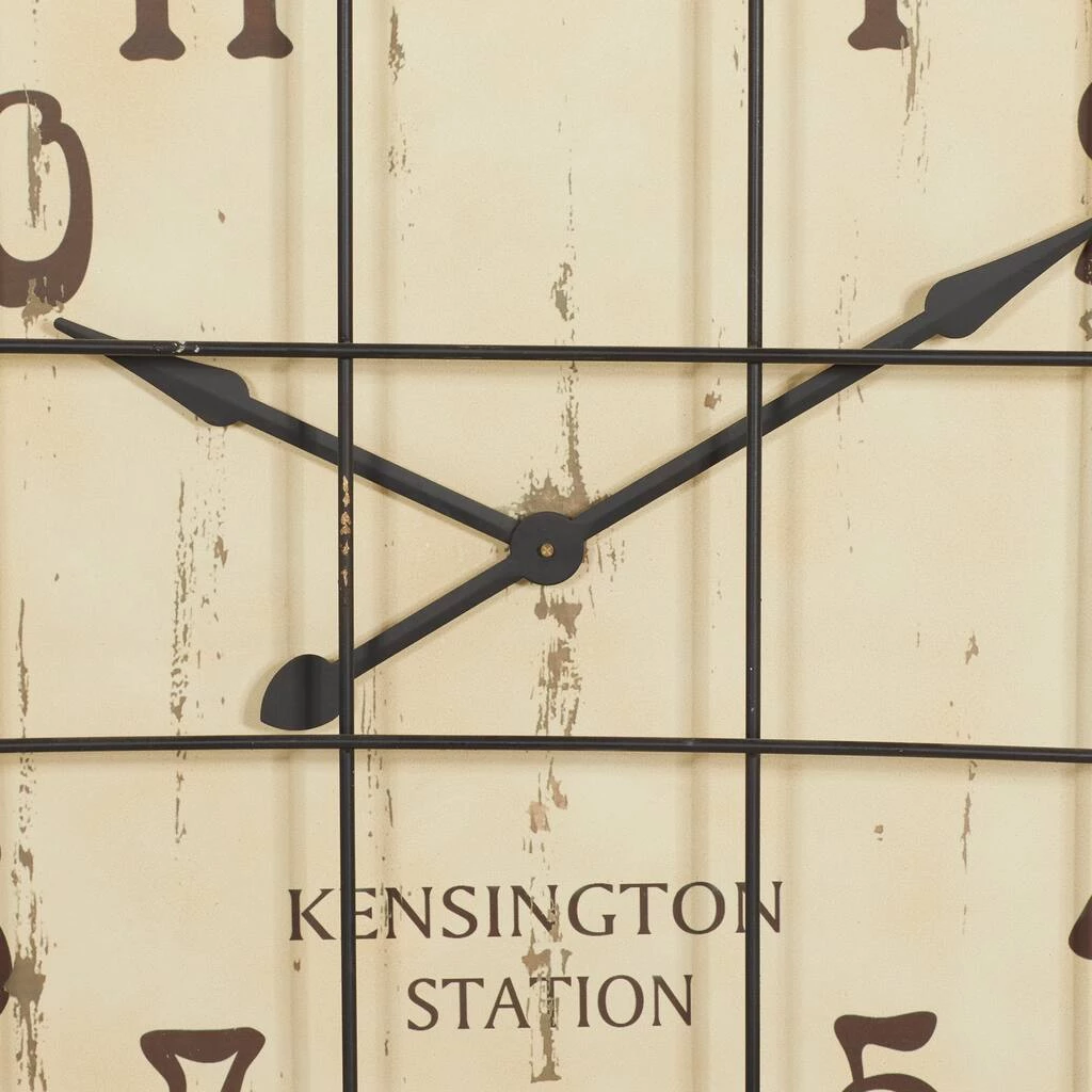 Time is a universal constant which you do not have control of, but you can control what goes on your walls. This wall clock will make heads turn towards any wall in your home. This classic wall clock is ideal for vintage, retro, and industrial-themed living spaces. Runs on one AA battery. This item ships in one carton. Features Arabic numerals for the hour and minute markers. The clock mechanism runs silent. A loop hardware and keyhole hook at the top section allows for easy hanging via a nail or screw. Suitable for indoor use. Showcases a vintage-inspired typography of “Kensington Station”. Designed with an industrial theme.