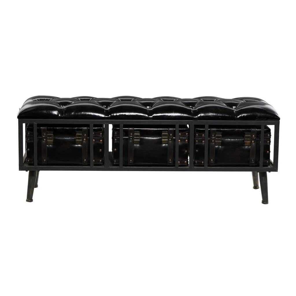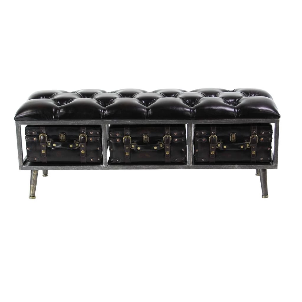 Making a bold statement while organizing your home space has never been this easy with this black suitcase bench placed in your living room, bedroom, or entryway. Organizing isn’t boring when you have an amazing storage unit at your disposal. Filled with shoes, books, blankets and more, these storage units are a stylish and convenient way to store your stuff. Designed with stoppers at the base that prevent scratching furniture and table tops, as well as sliding around. This item comes shipped in one carton. Trunk storages features faux leather handles and outline with metal locks. Suitable for indoor use only. Some assembly required. Industrial theme. Maximum weight limit is 250 lbs