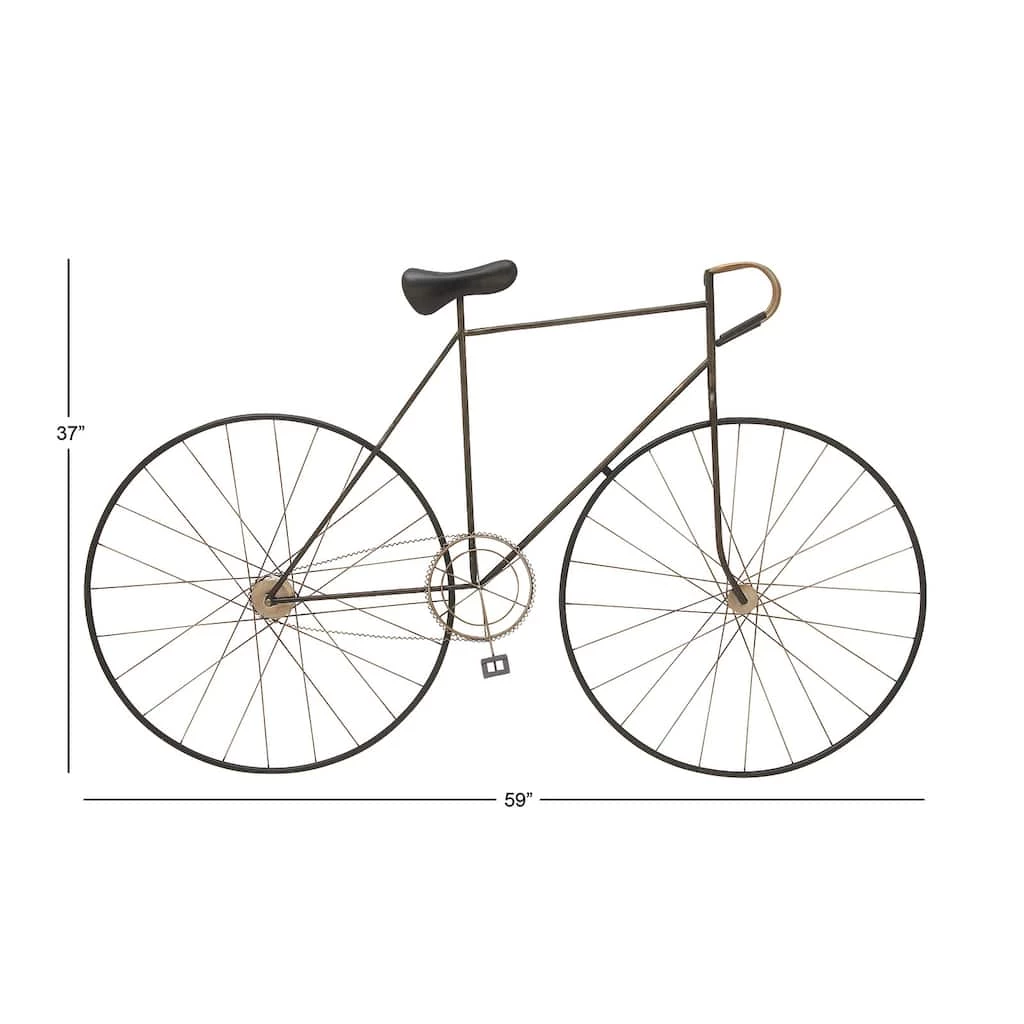 Pedal your way into your rustic, retro, and vintage inspired home styles with this realistic and life-sized bicycle metal wall sculpture! This marvelous piece of hanging wall art features a classic vintage-designed bicycle in a distressed iron black finish, and brass-finished spokes, gear, chain, and handlebars. They also showcase a rectangular-shaped pedal detailing in gray finish. Ideal as large decorative and focal point additions that can be hanged and displayed on your walls horizontally. They also come with an easy-to-hang feature at the back via hooks and nails.