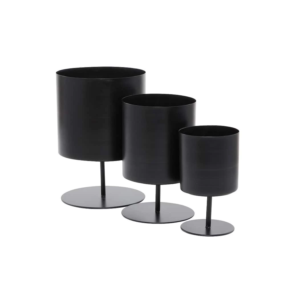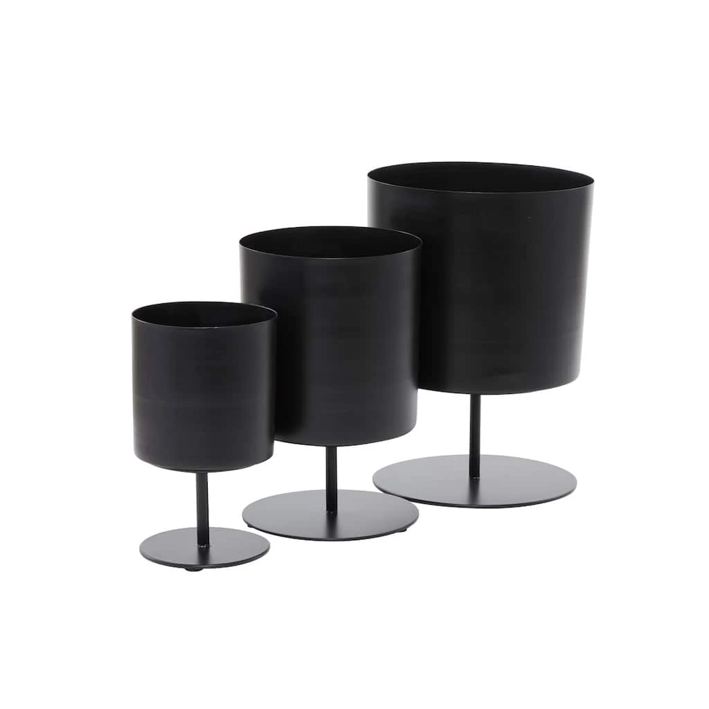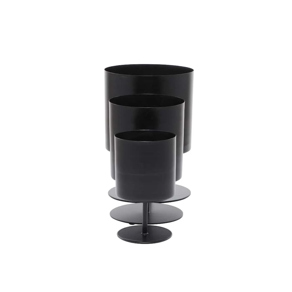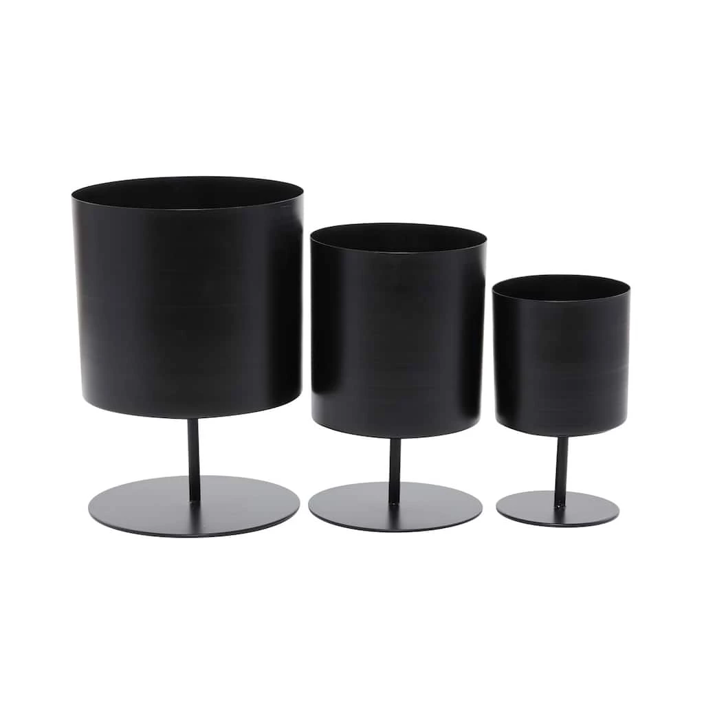 The simple yet bold design of this set of planters makes it an instant conversation piece and a gorgeous accent decor for your home. A smart chic style inspired living space knows how important mixing and matching is, especially when it comes to adding some greenery in your space. Enhance the mood and the look of your room with some plants in this beautifully designed planter. This item comes shipped in one carton. The cylindrical pots are securely mounted on the stable bases. Suitable for indoor use. Made in India. Pots do not have drainage holes. This set comes with 3 metal planters. Modern Theme. Planters do not have drainage holes but they are not watertight.