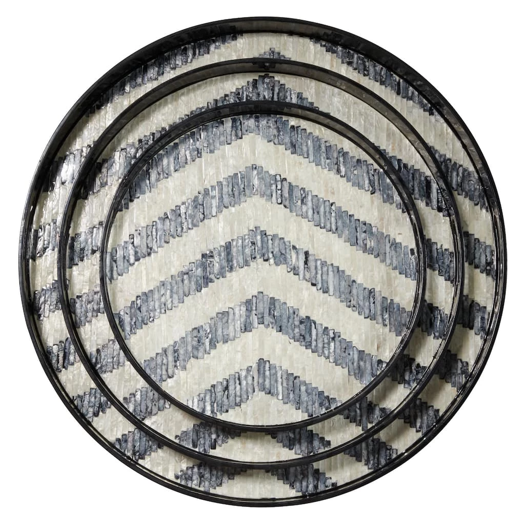 This exquisite set of Capiz sea shell trays are great decorative trays for shelves, coffee tables, dining tables, drawers, cabinets, and the bedroom. Whether in your kitchen, or on your coffee table, it’s a great way to display and store your favorite things. Each tray is a storage piece that is spacious for your trinkets or decorative goods on your mantle, coffee table or kitchen counter. This set comes shipped in one carton. Please note that this item is for decorative purpose use only and are not food safe. These are nesting trays for compact storage. Due to the handmade nature of this item, no two will be alike, there will be slight differences in shape, size, and color.