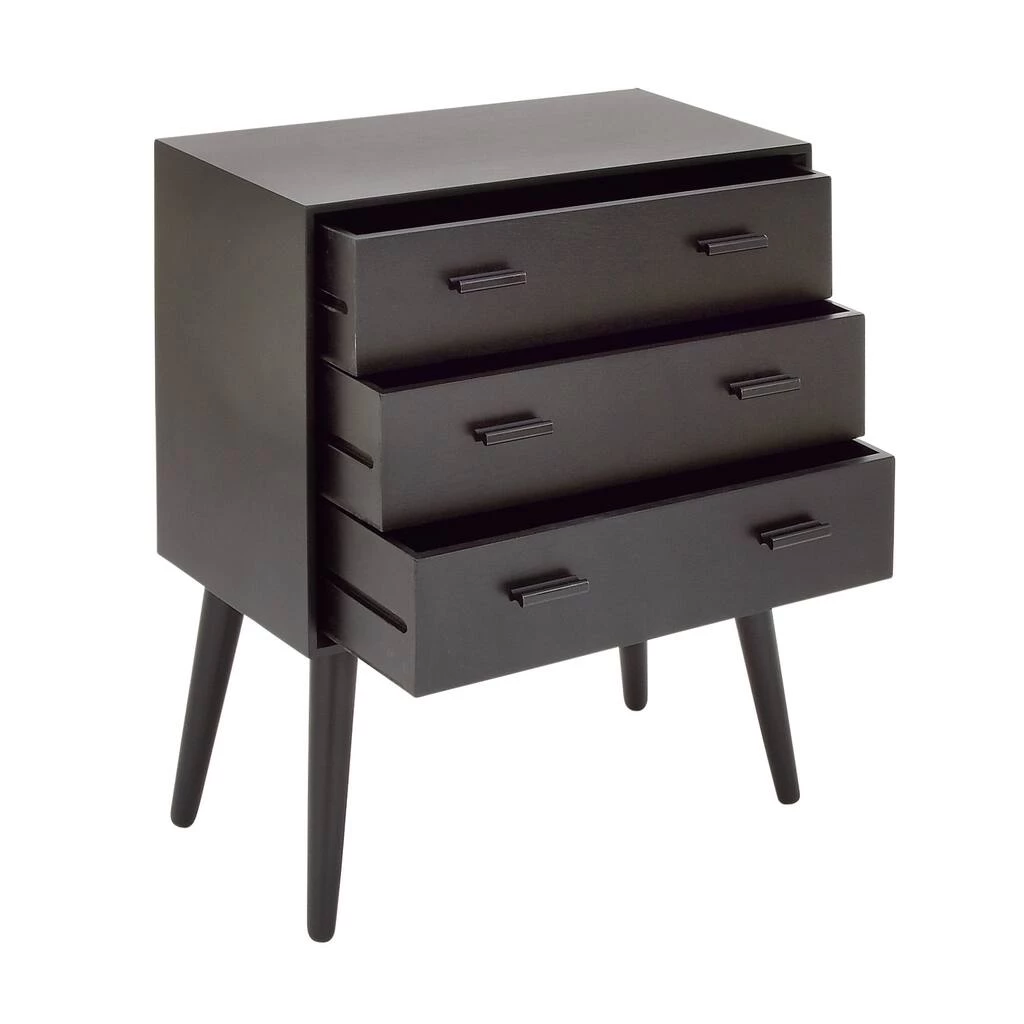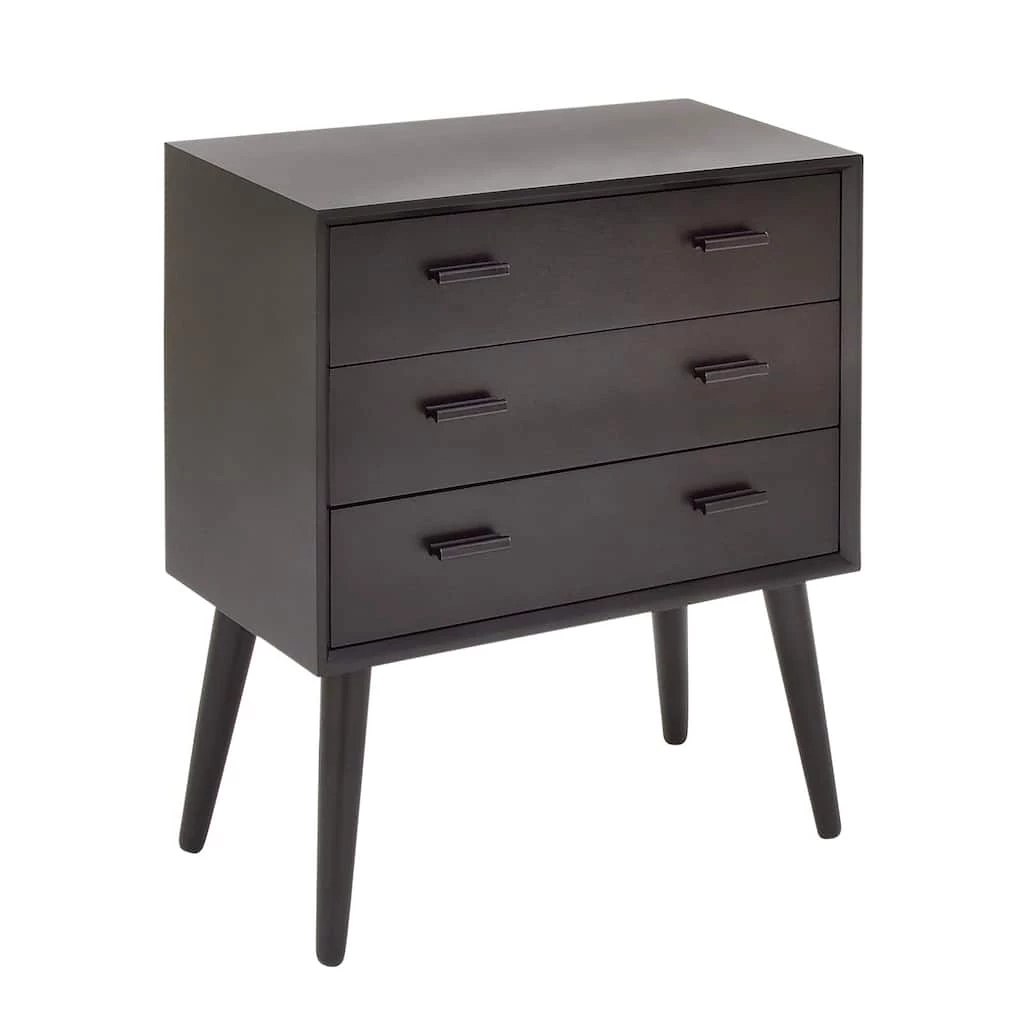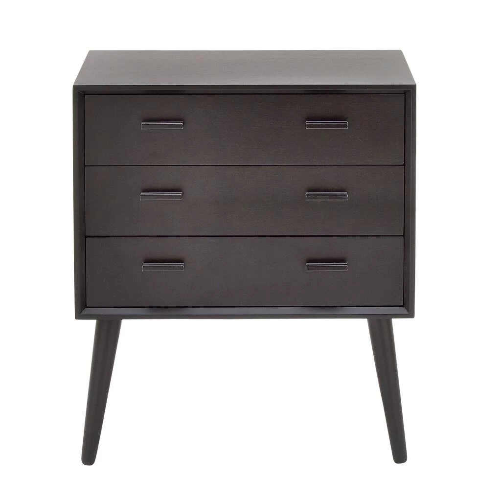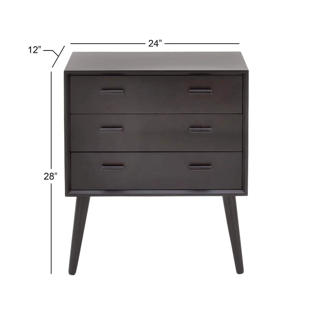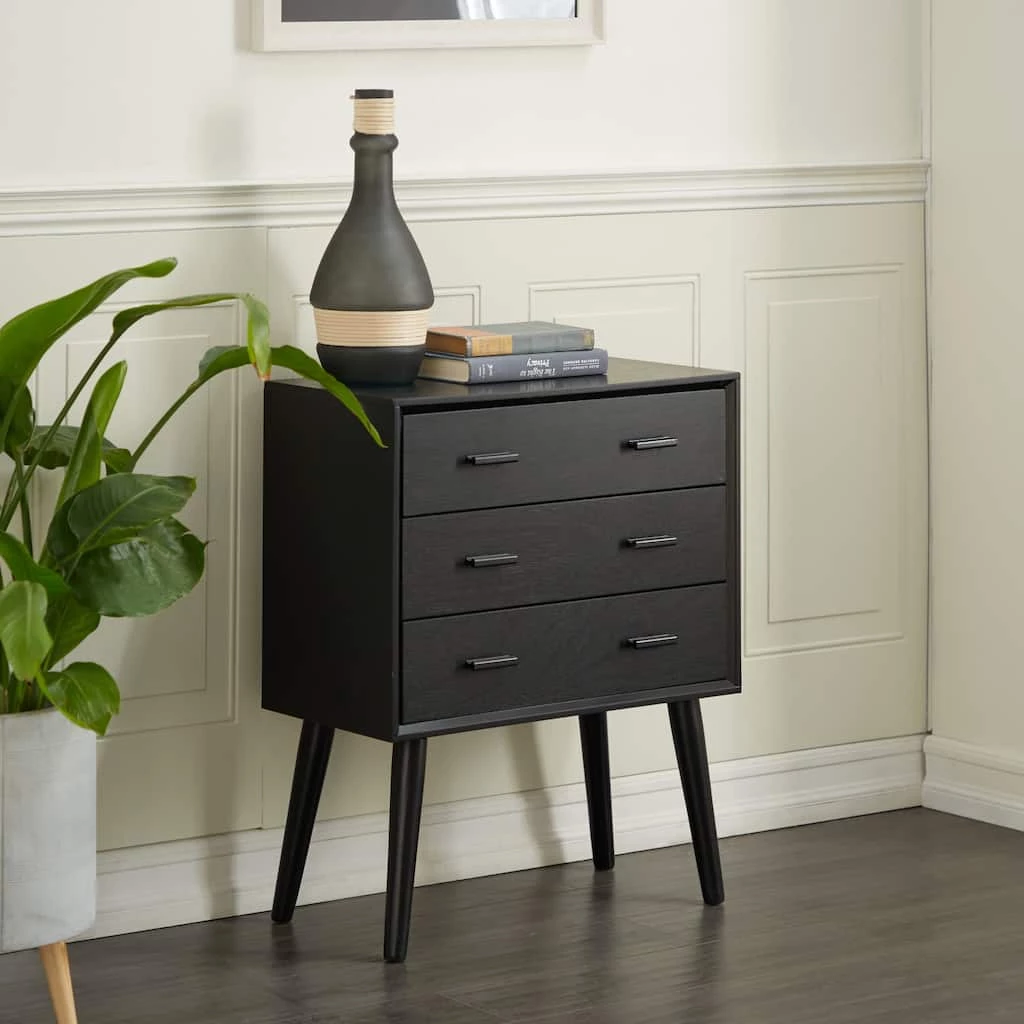 Useful and elegant, chests are more than just a place to store clutter and place a lamp. Add a unique stylish storage to your living room, hallway, or bedroom with this chest. This drawer cabinet is ideal for traditional, modern, and minimalist-themed living spaces. This item comes shipped in 1 carton. This black rectangular storage chest features 3 drawers with 21.12″L x 9.62″W x 5″H measurements. Suitable for indoor use. Maximum weight limit is 100 lbs. Modern Design.