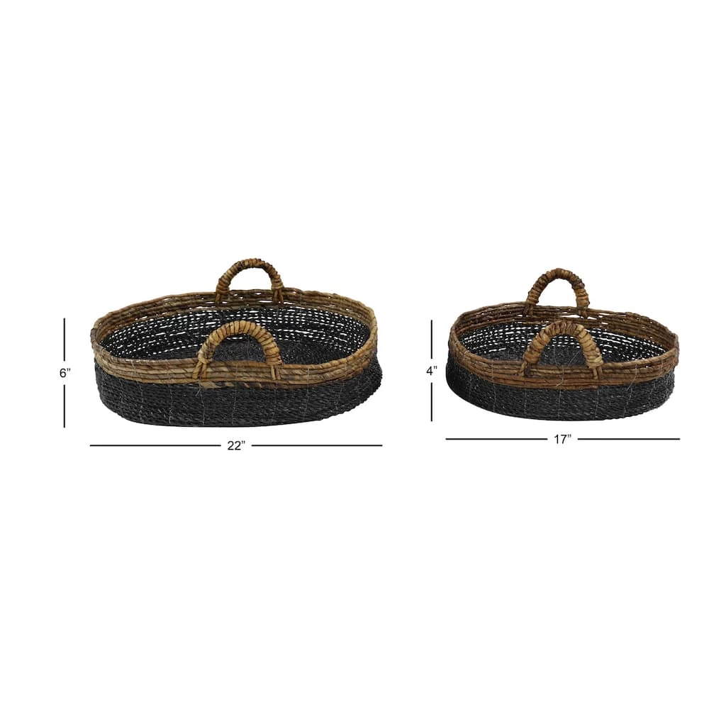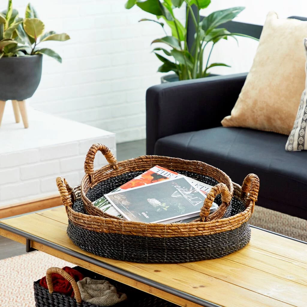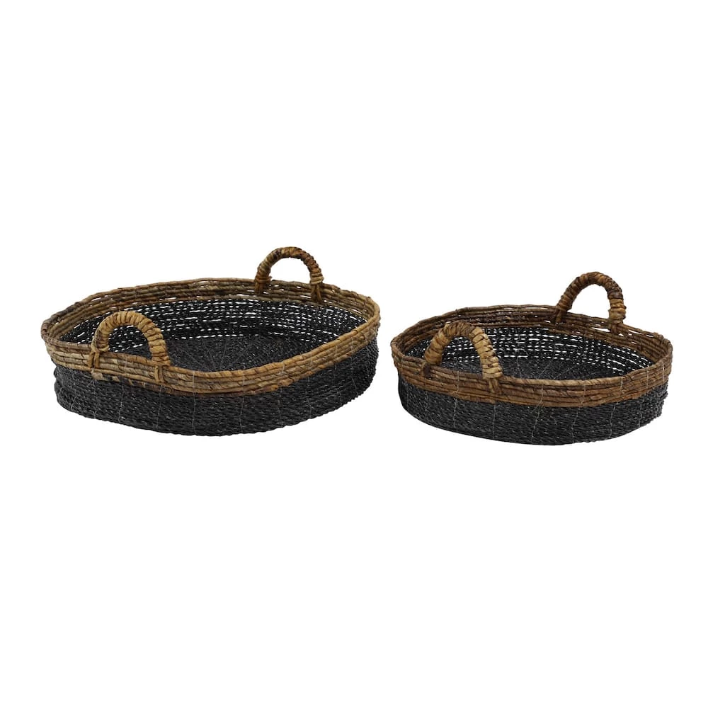 These hand-woven wicker trays are excellent kitchen storage for bread, fruits, and vegetables and as fun, stylish serving trays. Whether in your kitchen, or on your coffee table, they are a great way to display and store your favorite things. These trays are perfect storage pieces that are spacious for your trinkets or decorative goods on your mantle, coffee table or kitchen counter. This set comes shipped in one carton. Please note that this item is for decorative purpose use only and are not food safe.