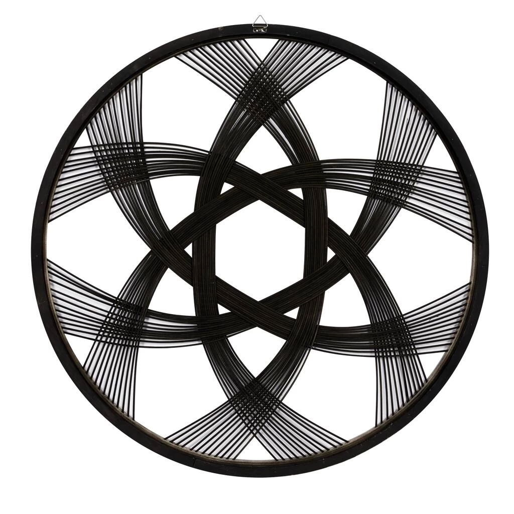 Create a visually stunning corner in your home with this rattan wall decor that features a woven star pattern. This round wood wall decor is crafted with natural rattan wood with hand-woven center patterns in a sleek black hue. Its round frame has a whitewashed finish that can match any contemporary or modern themed walls and allows seamless combination to any color palette. May it be on your living room, bedroom or nook, this rattan wall decor makes a perfect eye-catching piece while bringing artistic pattern to your space. This round wall accent piece hangs via a triangle ring hardware. Suitable for indoor use only. This item comes shipped in one carton.