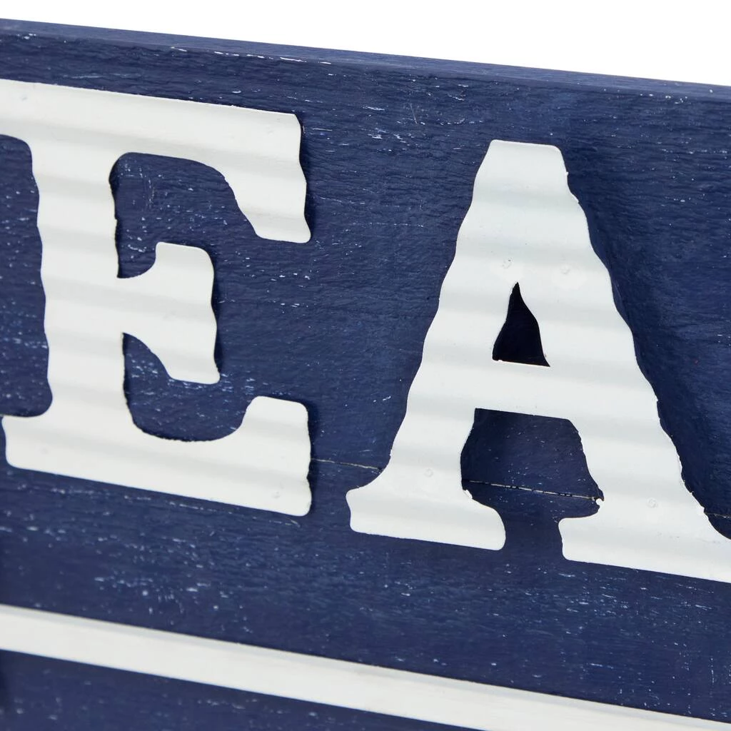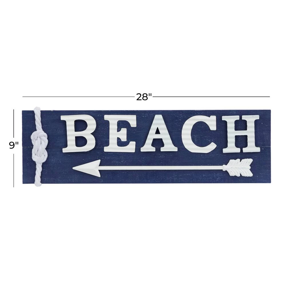 This wooden sign wall decor can be a focal point and a playful display on any wall space. Create an excellent focal point on your walls paired with some cute accent tables, and level up your home with this amazing wall Decor. Place this on any blank wall space adding both texture and depth to your home. This item comes shipped in one carton. The sturdy wood material of this decor is carved to create a rectangular wall plaque and corrugated βBeachβ signage. Item comes with keyhole hangers at the back for easy and secure hang. Suitable for indoor use only. Coastal Design. This accent piece showcases a βBeachβ sign.
