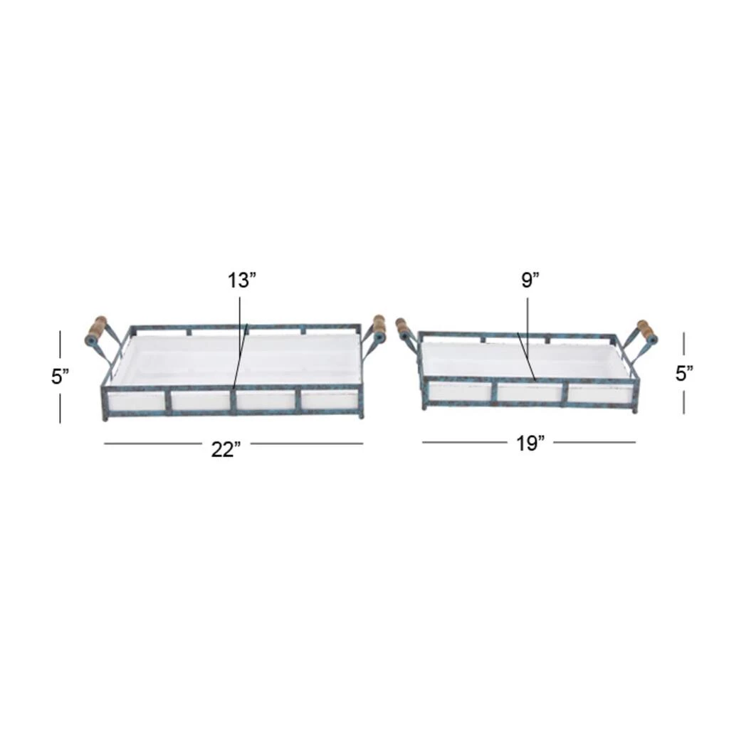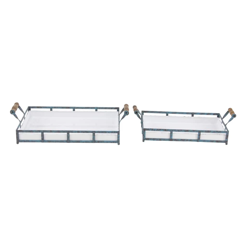 Use this set as serving trays or as a décor holders on your coffee, console, and kitchen tables for a useful decorative piece. Whether in your kitchen, or on your coffee table, they are a great way to display and store your favorite things. Bring the warmth of metal, fir wood, and farmhouse style into your home with this set of rectangular distressed serving trays. Place these charming trays on any accent table in your entryway, lobby, living room, or kitchen. Please note that this item is for decorative purpose use only and are not food safe.