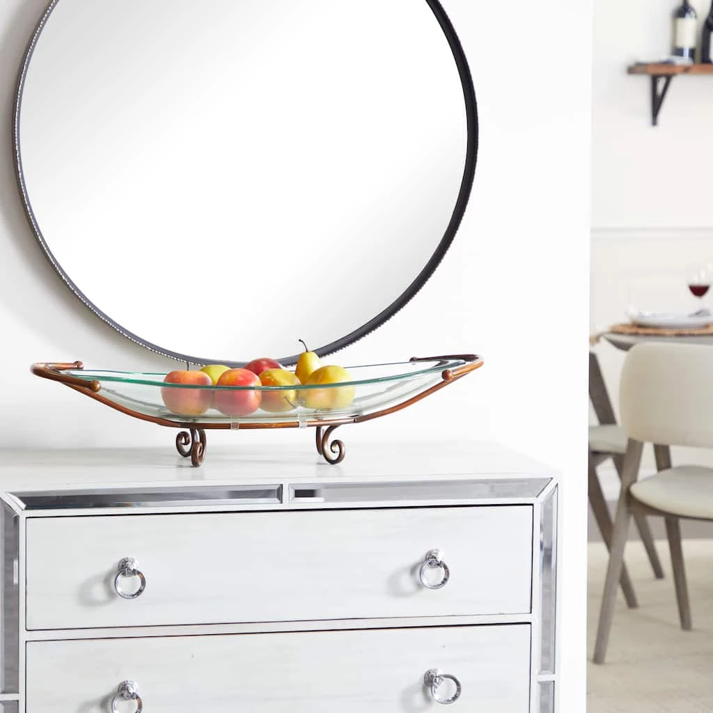 Focal point centerpiece for coffee tables, shelves, and kitchen counters. Use as a serving bowls or as a decor holder on your coffee, console, and kitchen tables for a useful decorative piece. Whether in your kitchen, or on your coffee table, it’s a great way to display and store your favorite things. Designed with black rubber stoppers at the base that prevent scratching furniture and table tops, as well as sliding around. This item comes shipped in one carton. Please note that this item is for decorative purpose use only and are not food safe. Suitable for indoor use only. Modern design.