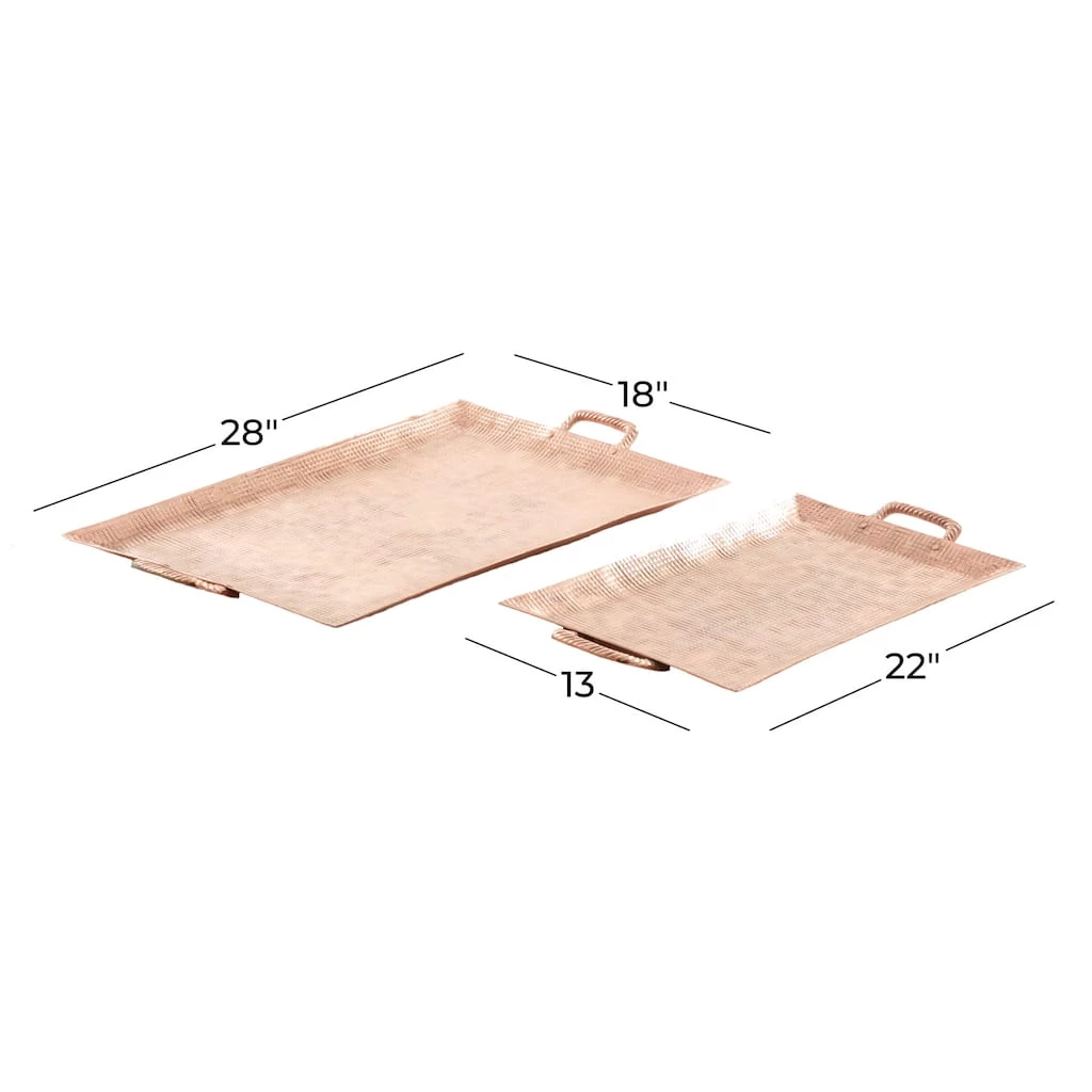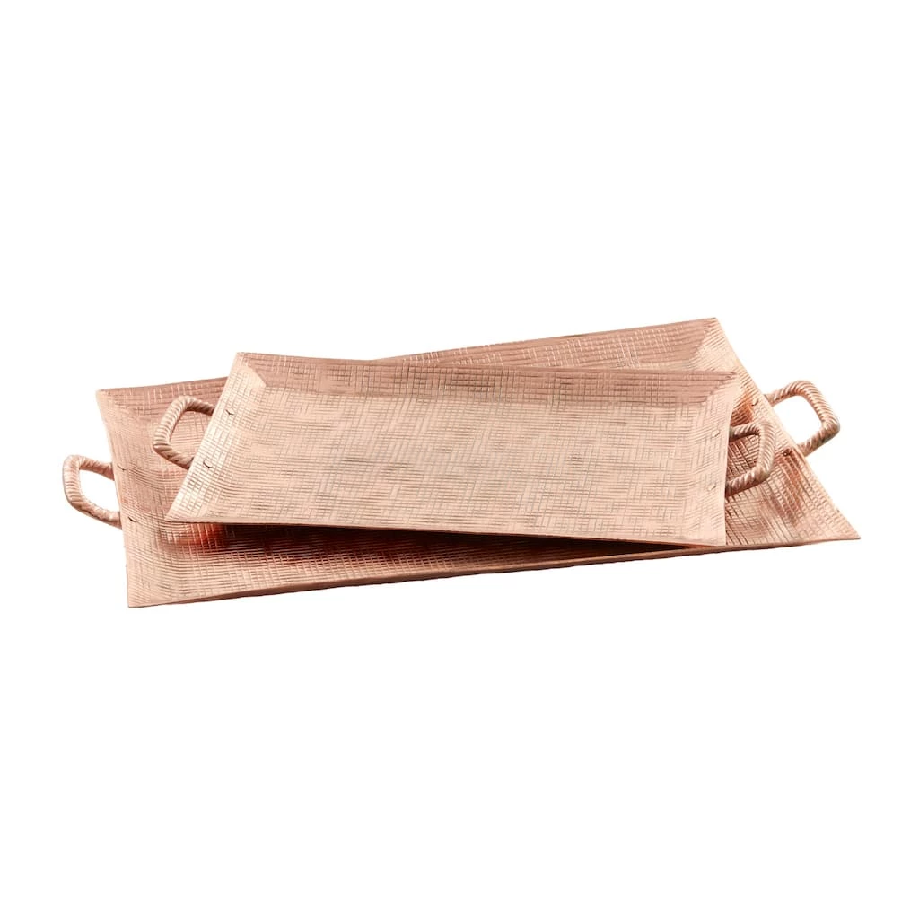 Functional and aesthetically pleasing, this rectangular aluminum decorative tray set is a fabulous accent piece that gives flair to your console table or side table. They are storage pieces that are spacious for your trinkets or decorative goods on your mantle, coffee table or kitchen counter. Keep your table top protected as you display your memorabilia and belonging on these trays. This item comes shipped in one carton. Please note that this item is for decorative purpose use only and are not food safe.