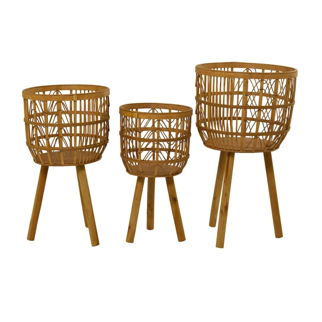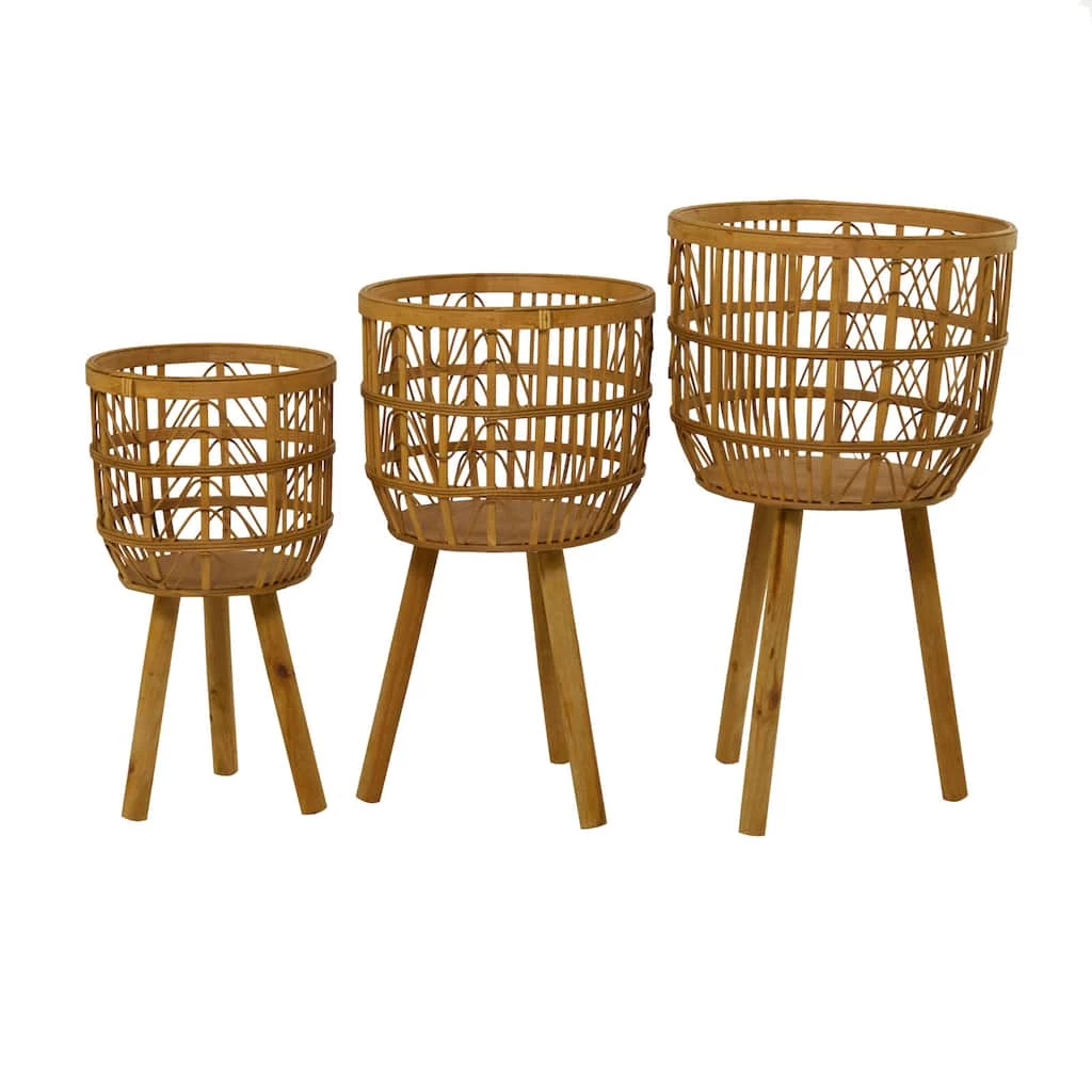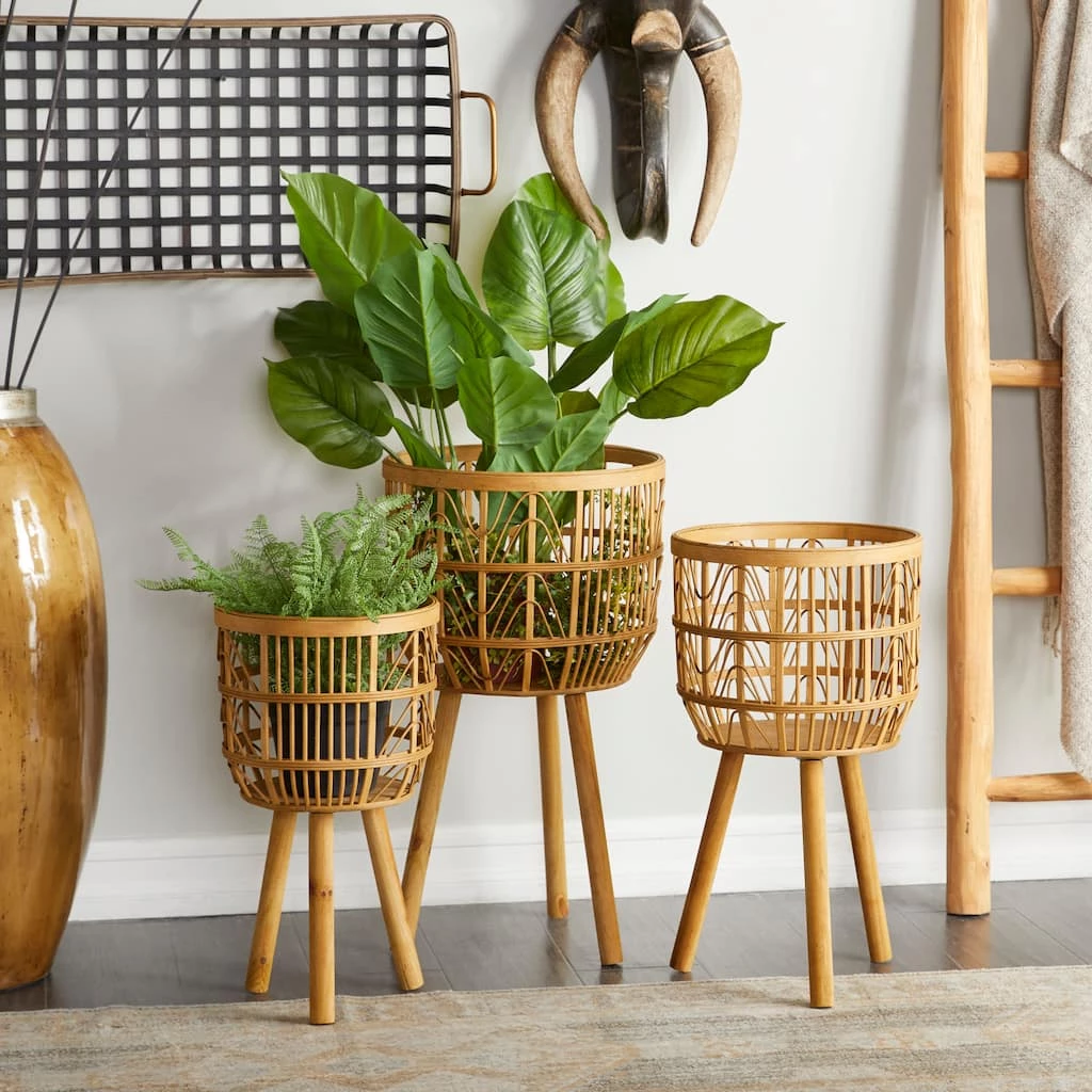 Buy π₯ Brown Bamboo Bohemian Planter, Set of 3″ 26″, 23″, 20″ by Ivory and Iris π₯°