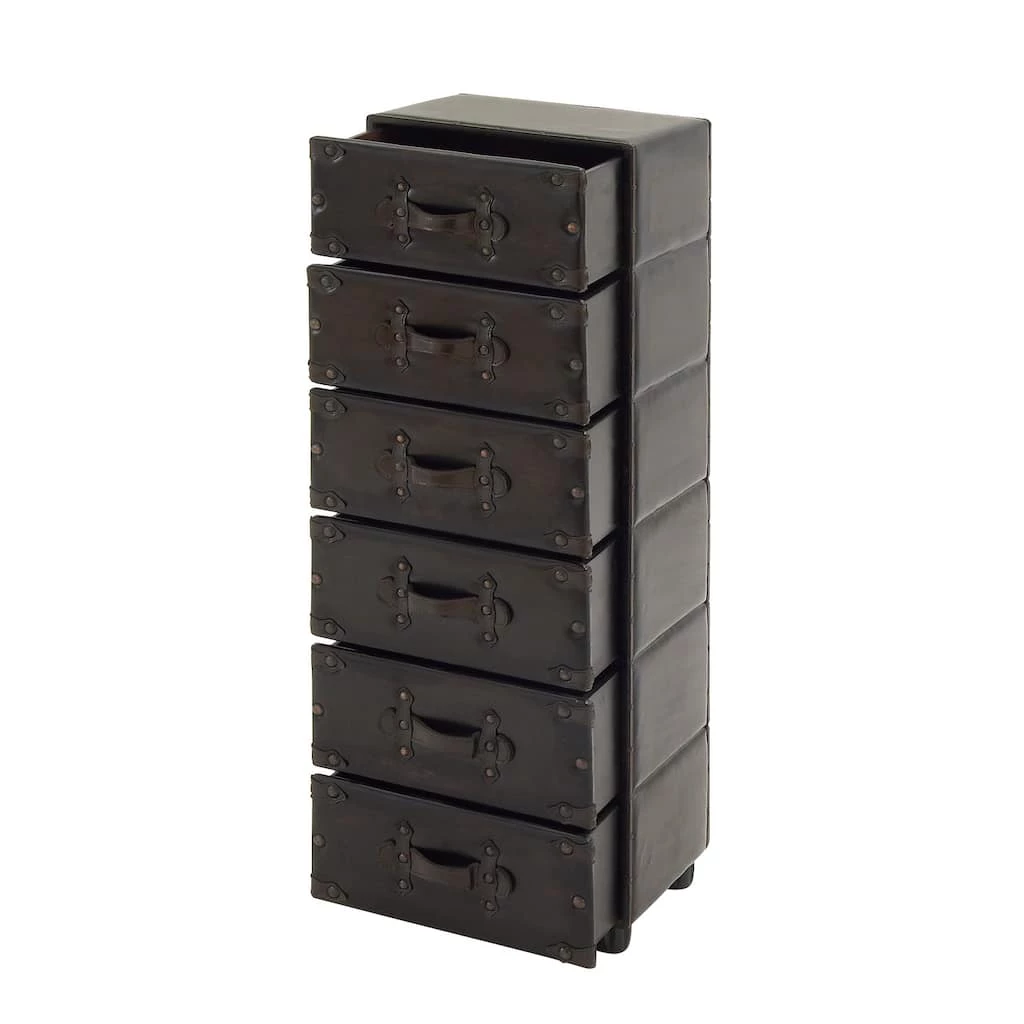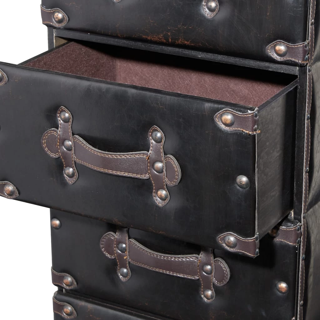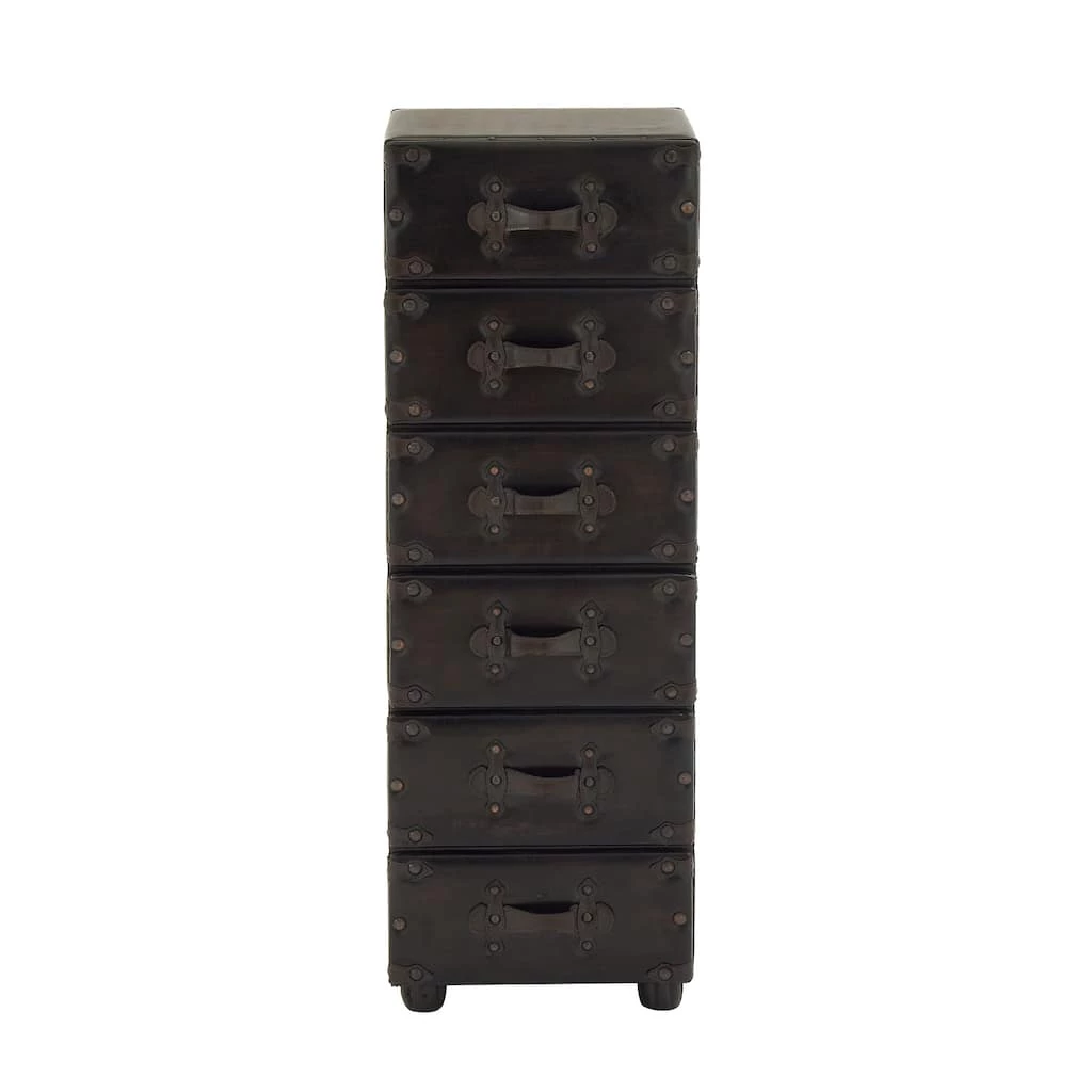 Useful and elegant, chests are more than just a place to store clutter and place a lamp. Add a unique stylish storage to your living room, hallway, or bedroom with this chest. This drawer cabinet is ideal for vintage, retro, and traditional antique-themed living spaces. This item comes shipped in 1 carton. This wood and leather chest features 6 drawers with 14″L x 10.31″W x 6.37″ measurements. Suitable for indoor use. Each drawer can hold up to 25 lbs. Traditional theme.