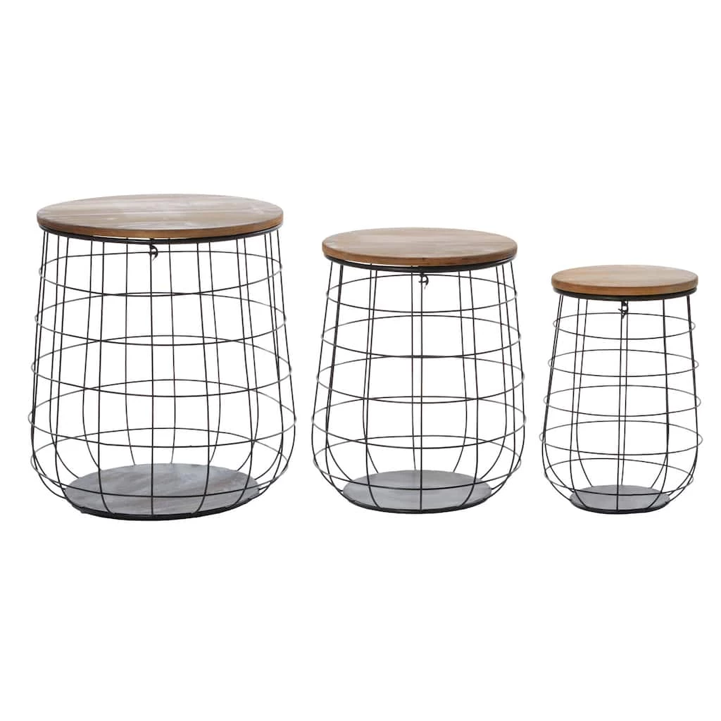This 3-piece wire basket with lid set features an industrial-farmhouse design that sits well next to brown wood or gray fabric furniture. Keep your belonging organized in these metal baskets with wood lid that securely closed with a hook latch. Filled with shoes, books, blankets and more, these storage baskets are a stylish way to store your stuff.