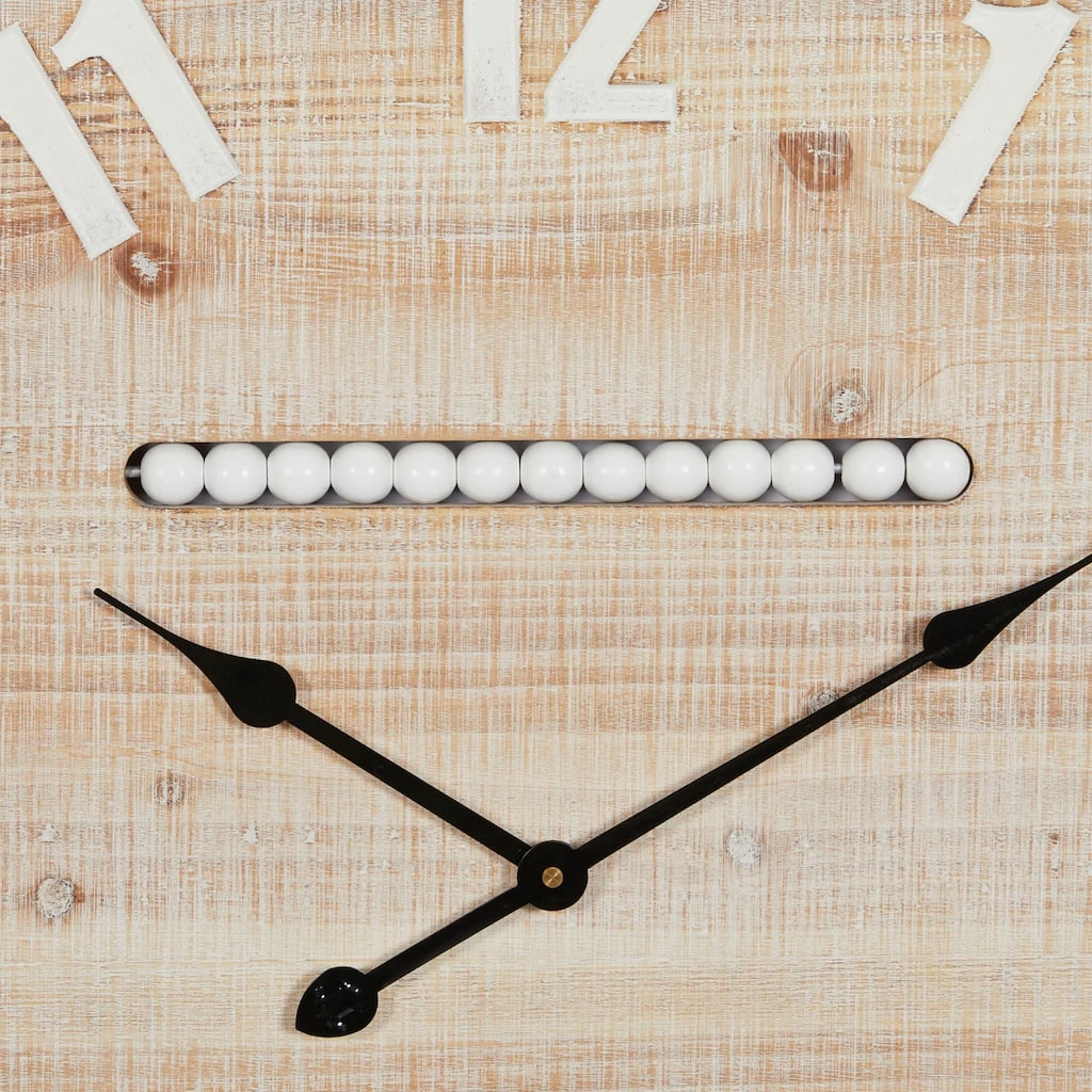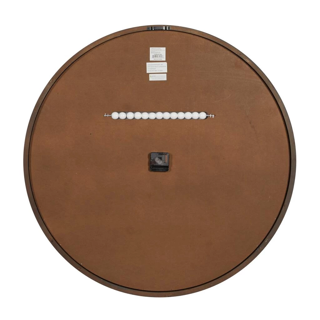 A wooden wall clock that reminds one of a country home or farmhouse is what this is. Its body was made from the combination of Chinese fir wood and MDF and then, spray-painted with numbers for the hours. This wall clock measures 31. 5″ in diameter and runs on a single AA battery that is not included in the package. Hang it via the readily available backing at the top portion. Arabic numerals appear on the clock face. The clock mechanism runs silent. Suitable for indoor use only. This item comes shipped in one carton.