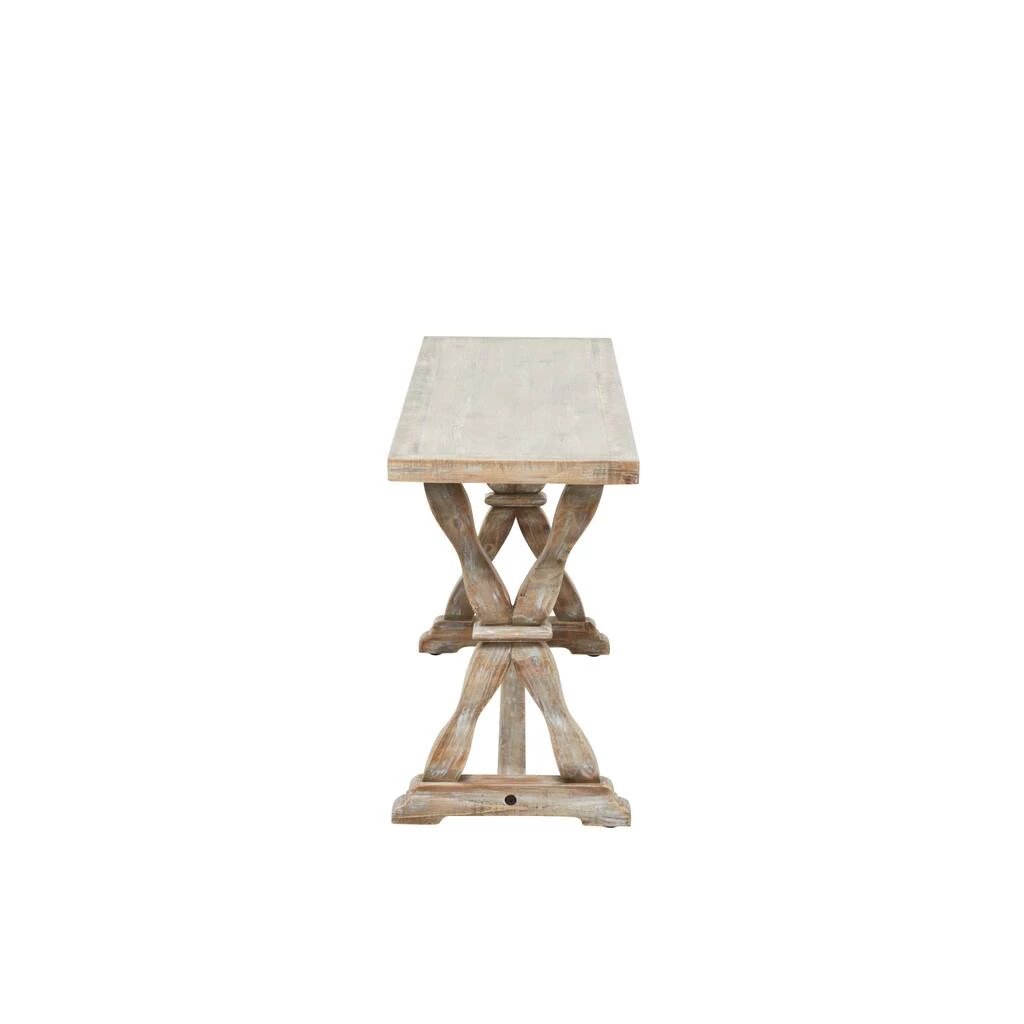 Decorate your home spaces with a fresh seat coverage or display surfaces with this charming wooden bench to complete your classic interior design. A small piece of furniture that make a big difference to give your home an instance refresh. Use it for storage to keep your product protected and organize or as display piece any where in your home. This item comes shipped in one carton. Carved trestle leg stands are attached to a flat tabletop. Suitable for indoor use only. Farmhouse design. Maximum weight limit is 250 lbs.