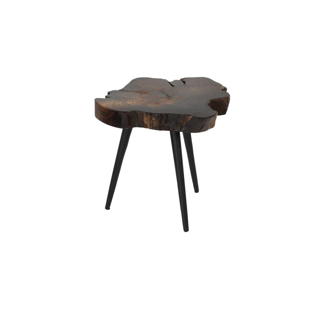 From the live edge wood silhouette to the warm earthy hues, this rustic table brings the organic beauty of the outdoors into your home.Use it as an accent piece in the living room, library, bedroom, waiting areas, or hallways of you home. A compact friendly table providing you with additional storage space any where in your home. This item comes shipped in one carton. Due to the handmade nature of this item, no two will be alike, there will be slight differences in shape, size, and color. Suitable for indoor use only. Due to the live edges of the piece, each is unique, so no two products will have an identical pattern, shade, or cut. Item has maximum weight limit of 100 lbs. Made in Indonesia. Contemporary theme