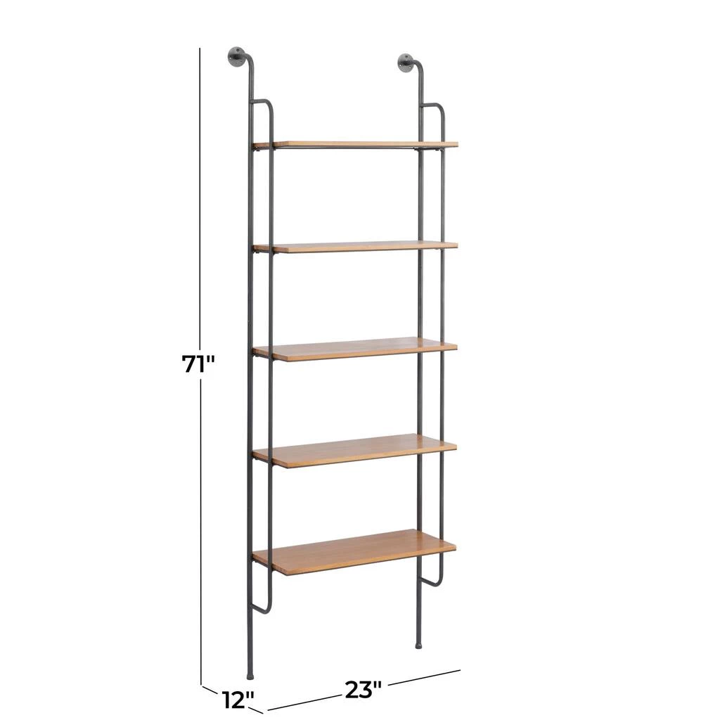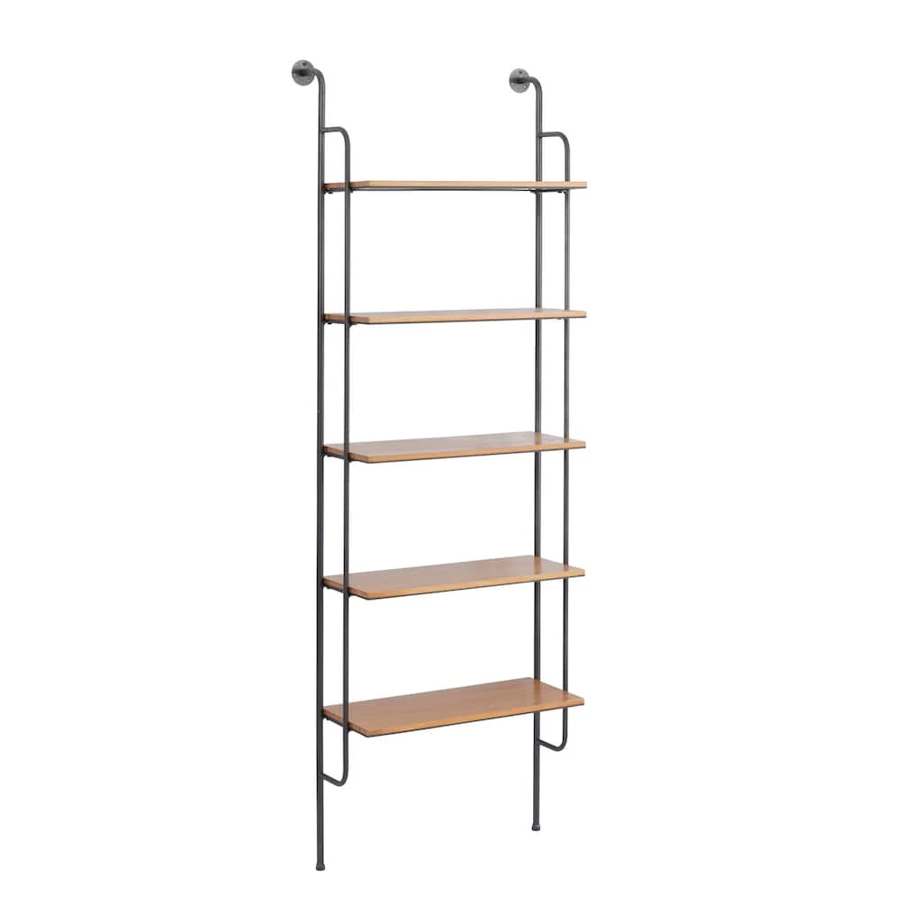 Accessorize your living space and bring a feel-good vibe with this functional wall shelf that provides optimal storage solution. Utilize your wall space to add more storage for a space saving solution in any compact area. Maintain an organized home to create comfort and a welcoming atmosphere. This item comes shipped in one carton. Item comes with round metal plates with screw slots. Suitable for indoor use only. This furniture has 5 shelves. Industrial Design. Item has max weight of 15 lbs.