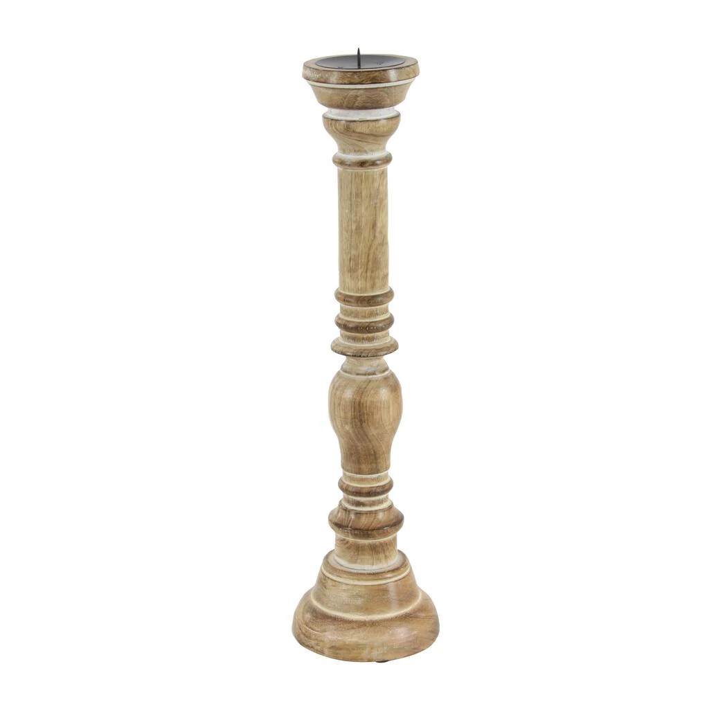 Infuse your space in the romantic candlelight glow that emits from this set of brown pillar candle holders for home. Delight your guests and make any occasion extra special by adding a lighted or flameless candle to this candle holder centerpiece. Made with a sturdy base, it is perfect for creating an elegant atmosphere at your table top or mantel.