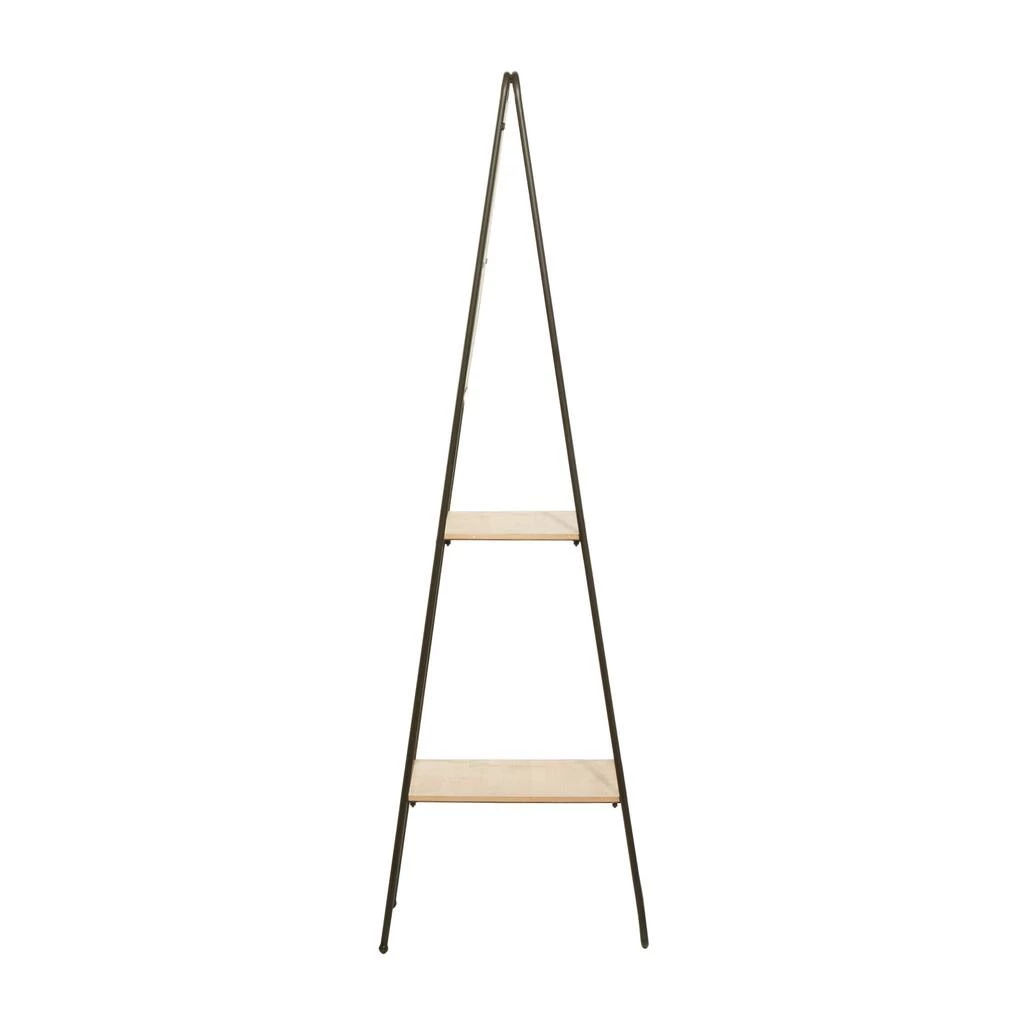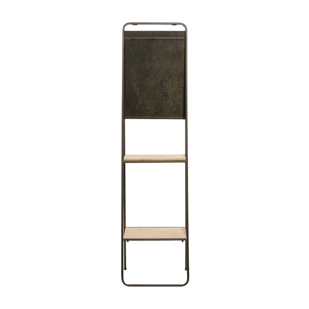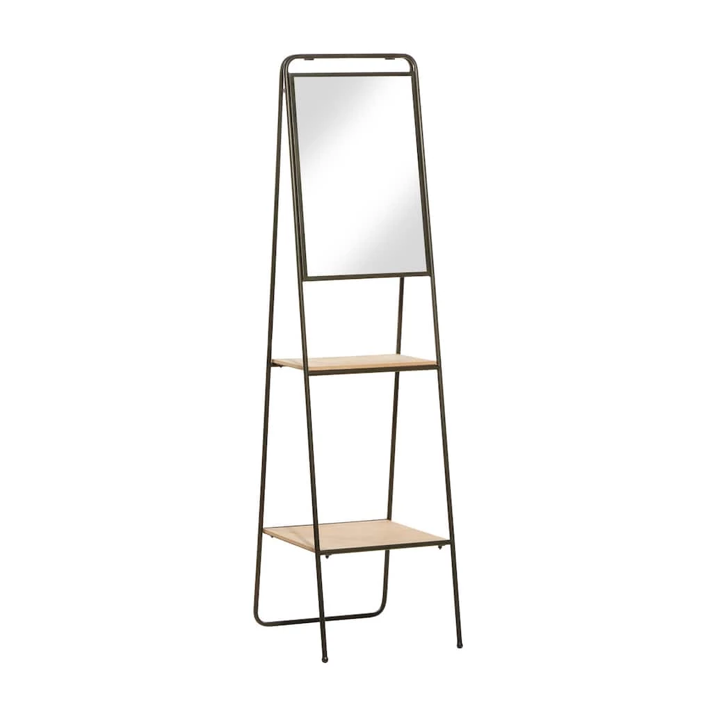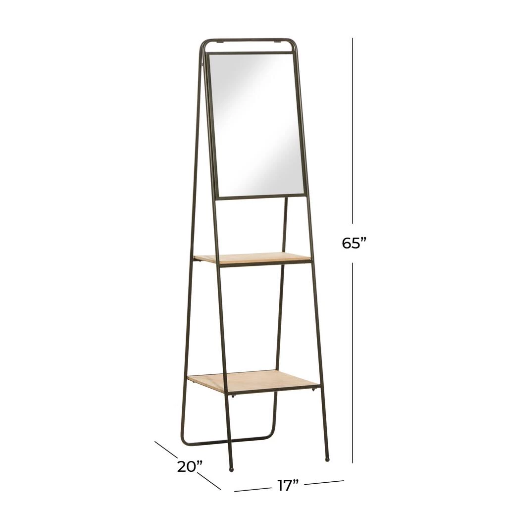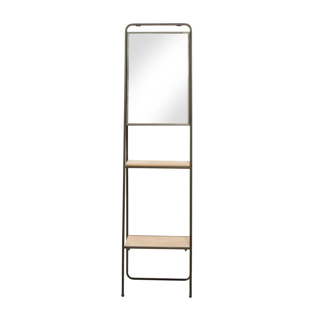 Add some style in your shabby chic inspired living room by displaying this wall mirror and shelf combination on an empty corner for an easy boost in style and elegance. Features a shabby chic style inspired design for that elegant vibe. Features an industrial inspired design to make your space unique. Maximize your wall space to create depth, storage and balance with this piece. This item is shipped in one carton. Shelves are mounted on the metal frame. Suitable for indoor use. Each shelf can hold up to 25 lbs. This item includes 2 levels of shelves. Designed with an industrial theme.