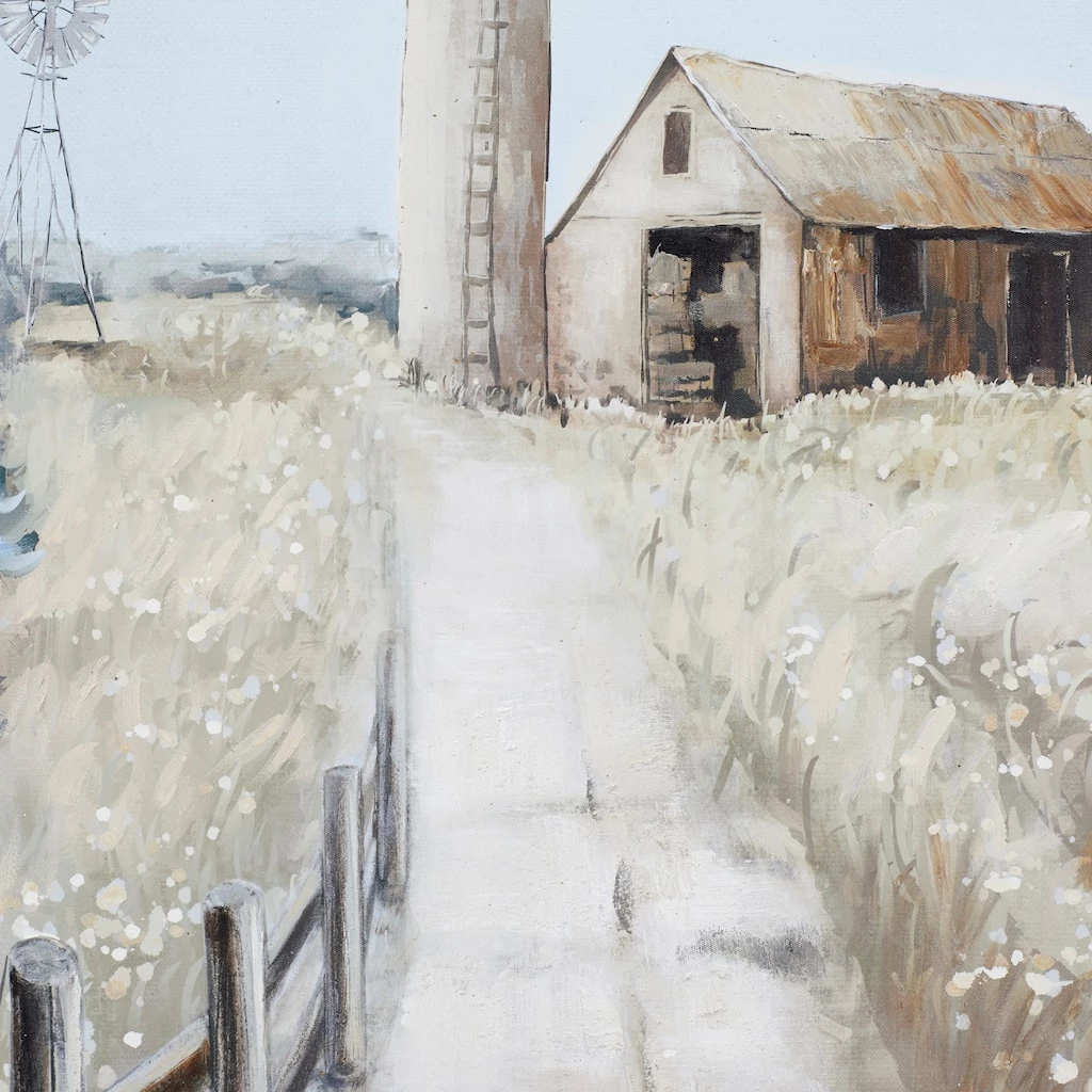 Display this picturesque wall art as a focal point canvas for your serene living spaces that feature a white toned interior setting with plenty of windows and natural light. Bring a finishing touch to your home with an inviting appeal with this console table. Useful and elegant, console tables are more than just a place to throw your mail. This item is shipped in one carton. Due to the handmade nature of this item, no two will be alike, there will be slight differences in shape, size, and color. This item comes with sawtooth hardware at the back for easy hanging via nail or screw. Suitable for indoor use. Modern farmhouse style.