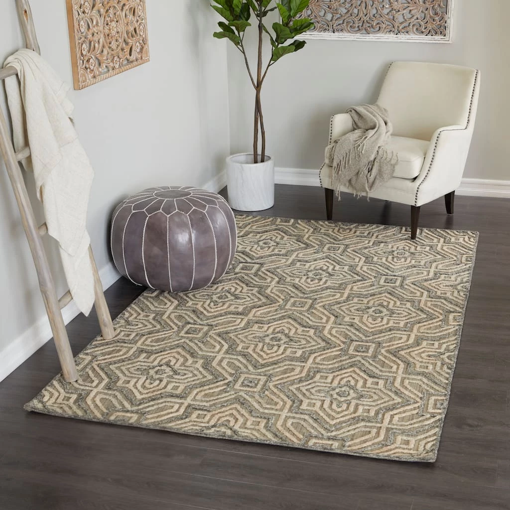 This area rug is an artistic display for your floor while keeping your furniture protected and feet warm all year long. Add a splash of color and design with this rectangular area rug to help balance and fill uneven floor space. Keep your hard surface floor protected with this soft wool geometric design area rug that provides warmth and comfort for a cozy inspired home. It has gray cotton cloth backing but rug pads is highly recommended. This item ships in one carton. Due to the handmade nature of this item, no two will be alike, there will be slight differences in shape, size, and color. Suitable for indoor use only. Avoid direct sunlight as it will cause the colors in your area rug to fade over time; place your area rug away from direct sunlight whenever possible. Use rug protectors under the legs of heavy furniture to avoid flattening pile. Rotating your rugs every 3-6 months will protect against uneven wear from foot traffic and furniture weight.