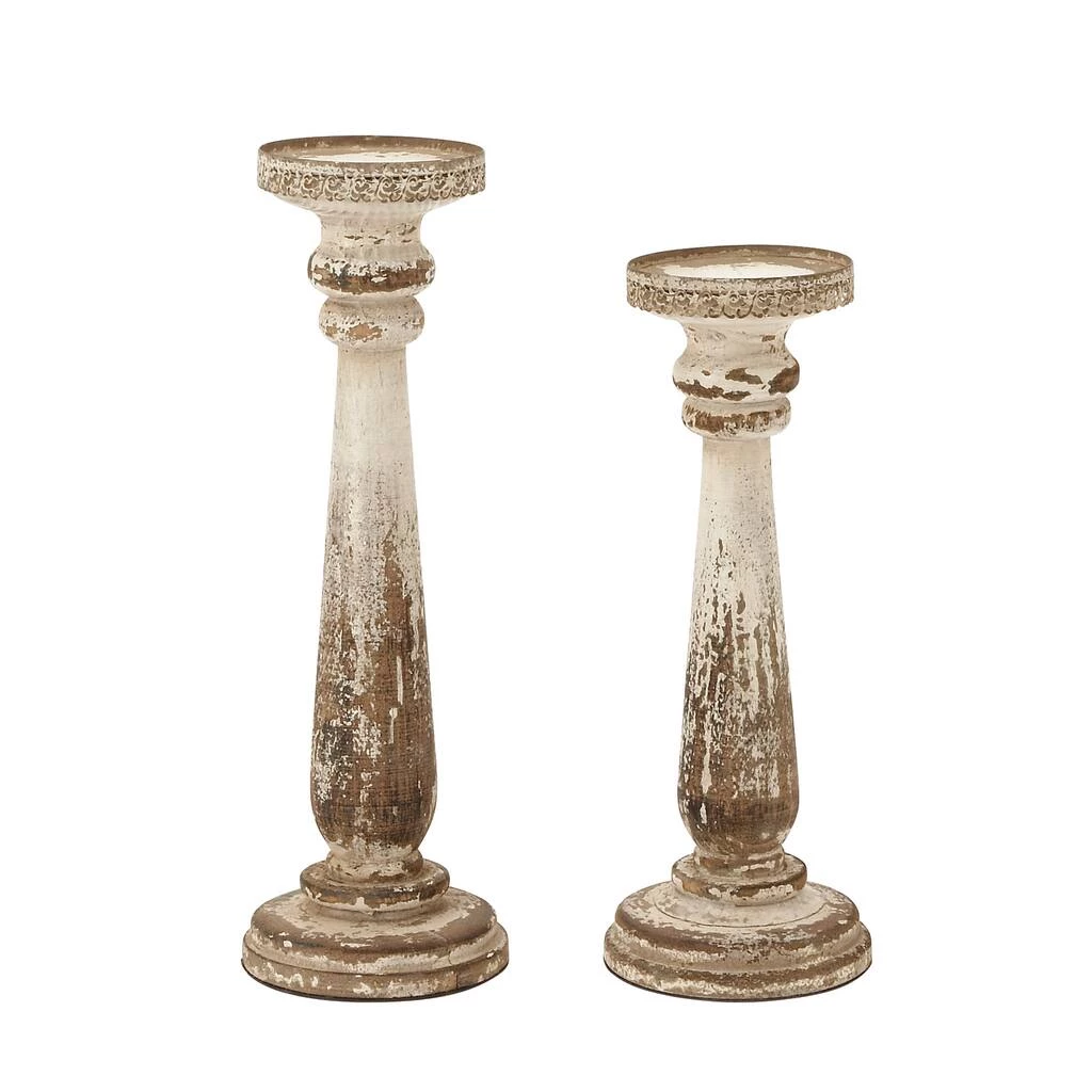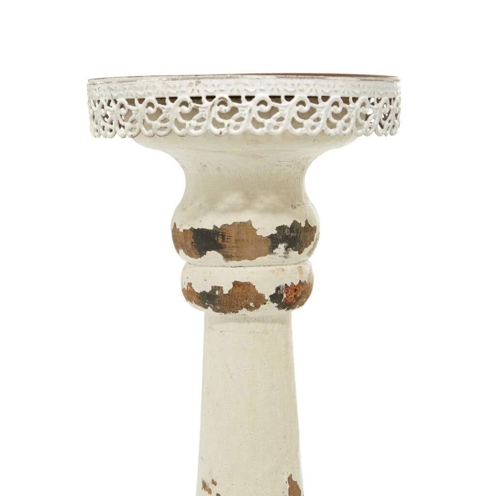 Add this brown and white candle holder set to your mantel for traditional style and romantic lighting. Delight your guests and make any occasion extra special by adding a lighted or flameless candle to this candle holder centerpiece. Made with a sturdy base, it is perfect for creating an elegant atmosphere at your table top or mantel. It is designed with rubber stoppers at the base that prevent scratching furniture and table tops, as well as sliding around.