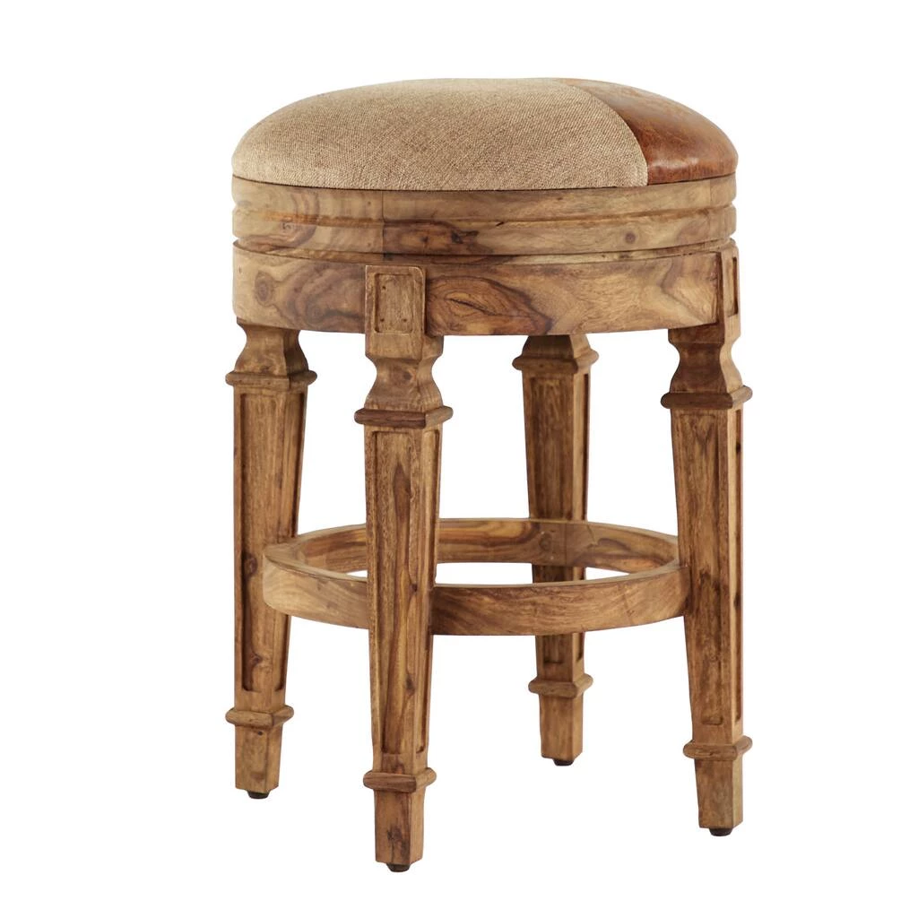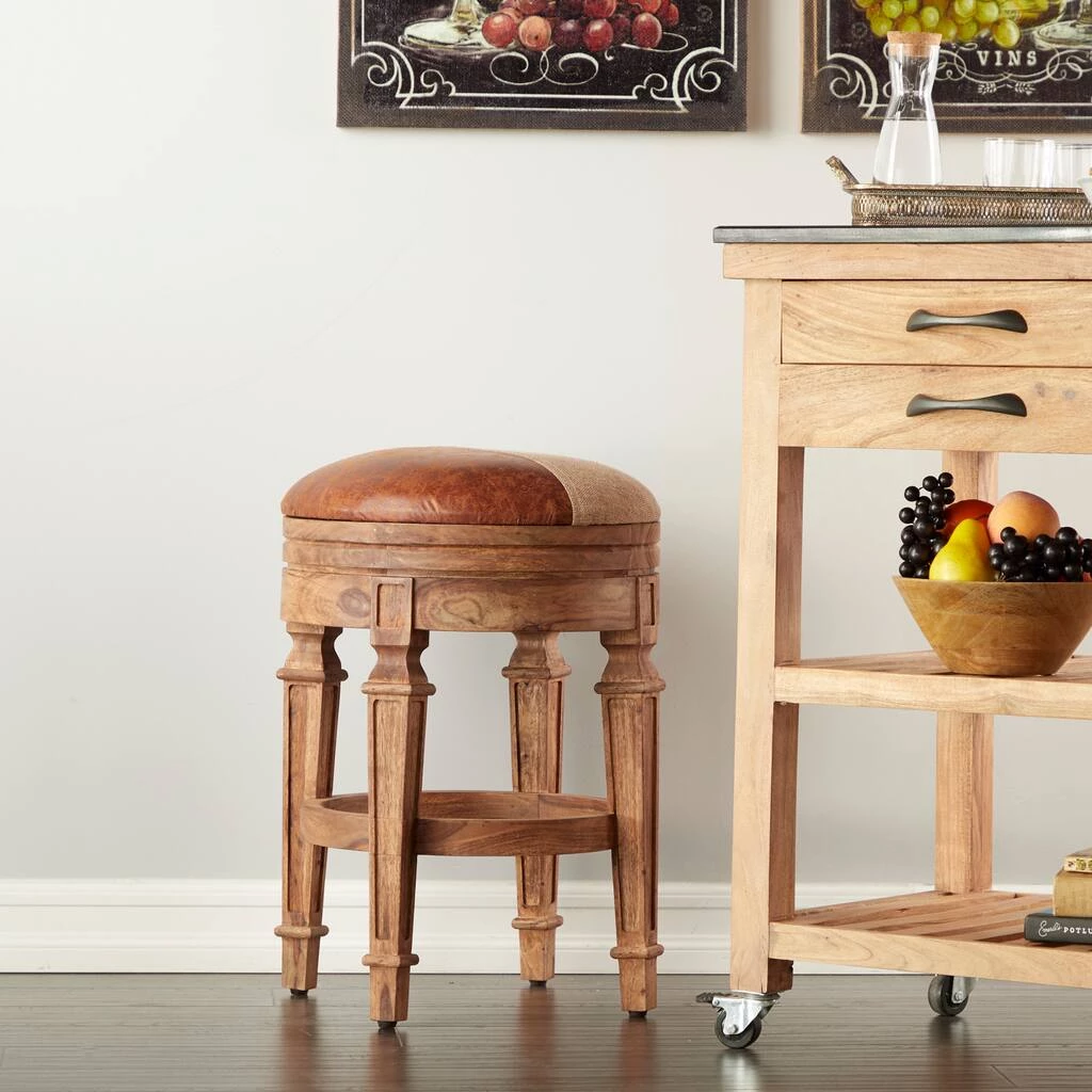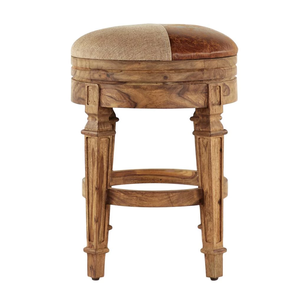The neat finish on North Indian rosewood and brown leatherette goes well with polish rustic interiors. Make memories and laughter in the kitchen as you sit pretty in this stylish bar stool. Find comfort in our counter stool featuring eye catching design and durable structure. Designed with protective stoppers at the base that prevent scratching furniture and table tops, as well as sliding around. Wipe clean with dry cloth. Suitable for indoor use only. Maximum weight limit is 250 lbs. Made in India. Rustic design.