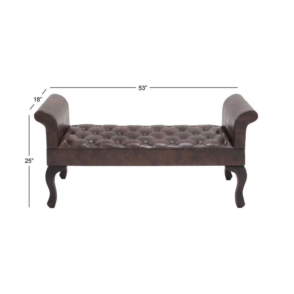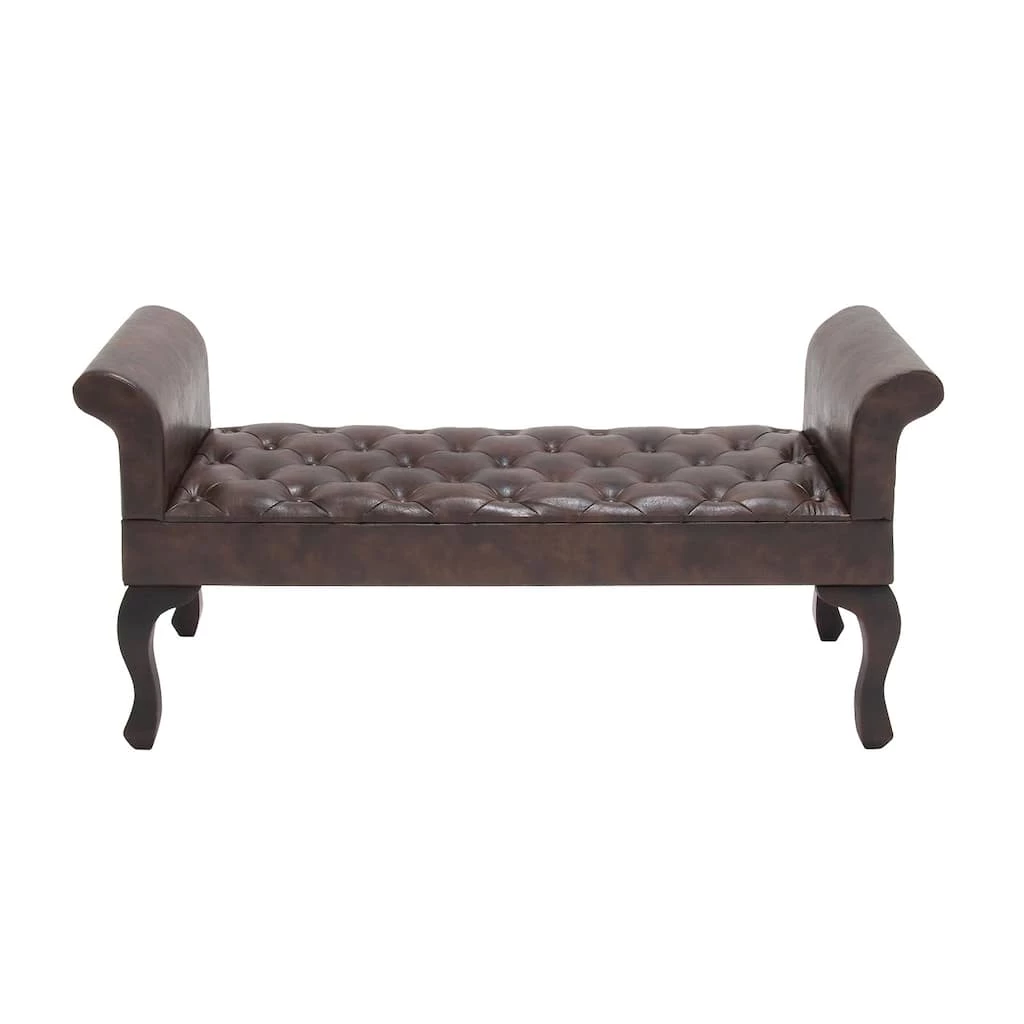 Accommodate both style and function with this walnut brown cleopatra leather bench placed in your traditional-themed home space. So take a load off and relax on this decorative bench. A small piece of furniture that make a big difference to give your home an instance refresh. This item comes shipped in one carton. Suitable for indoor use only. Some assembly required. Traditional theme. Maximum weight limit is 400 lbs
