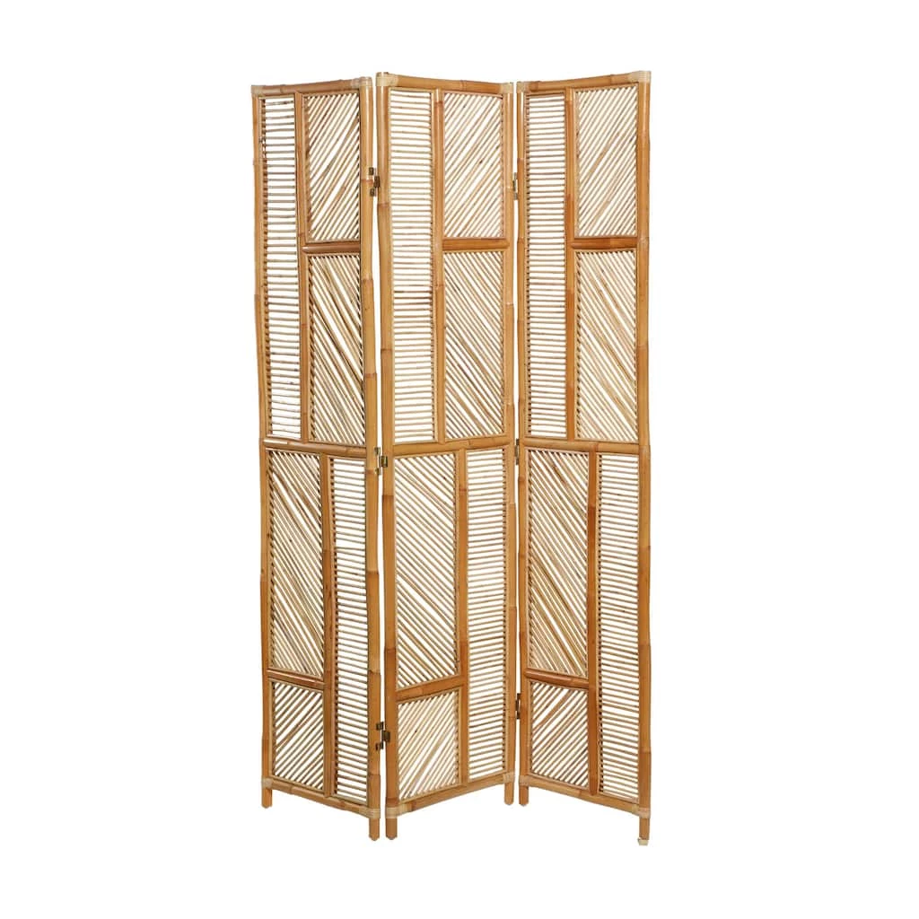 Providing function in a stylish way, these room dividers work double duty as privacy screens and standing art. Stand against a wall as a large accent piece, or in the middle of a room to add some privacy and divided space, this room divider is too style to hide away. Contemporary design. This contemporary wooden room divider is great for styling your space and blocking unattractive area. This room divider features 3 panels. This item ship in one carton. Made in Indonesia.