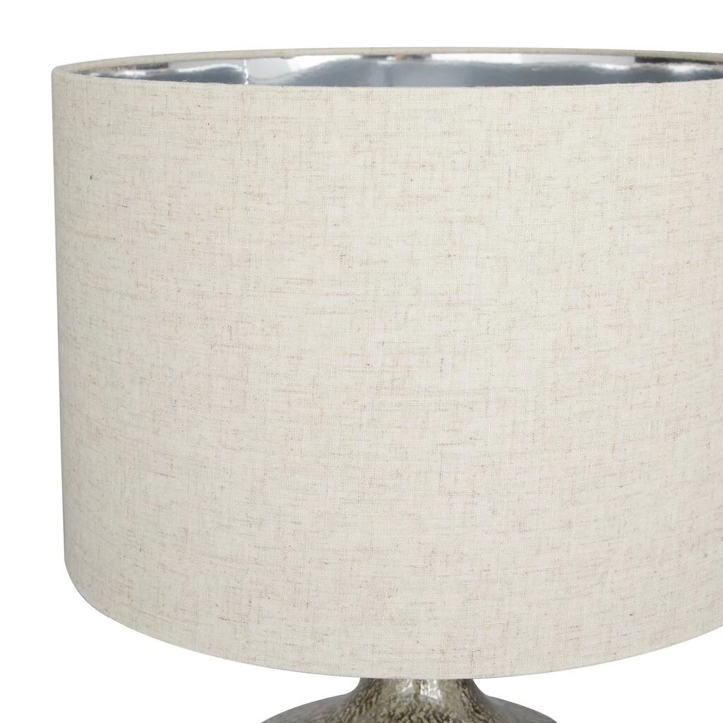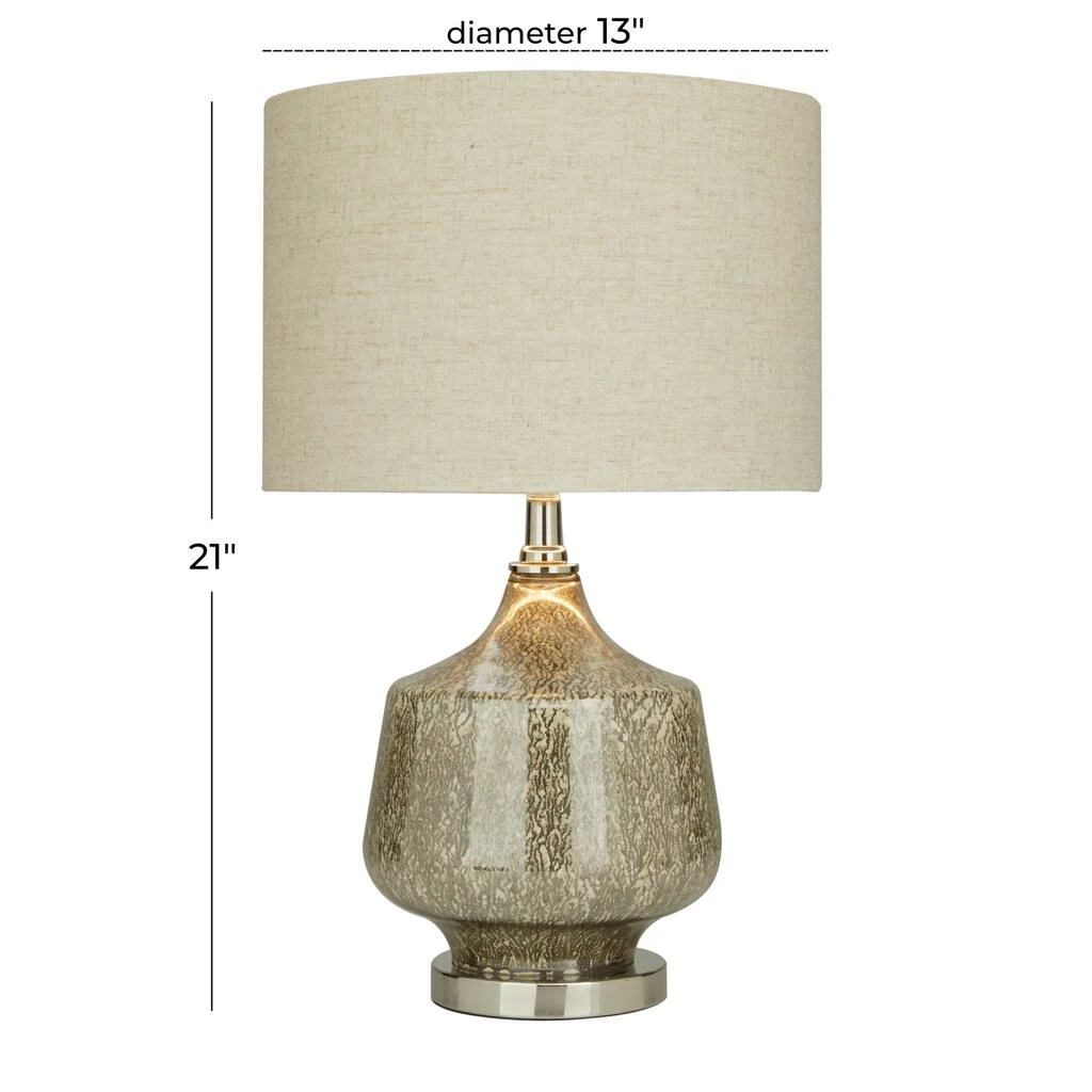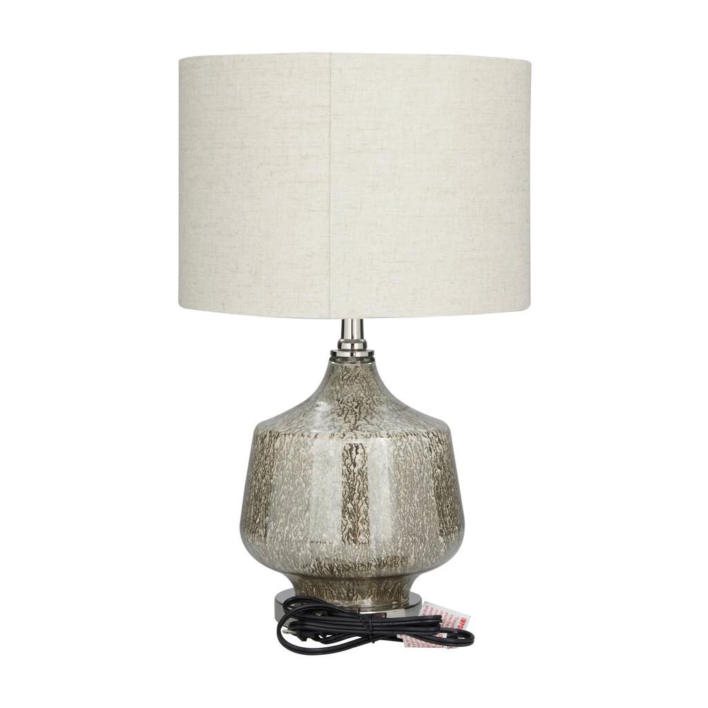 Add a relaxing ambience within your intimate living spaces as you illuminate the room with a warm glow with this artistic glass lampshade. This eye catching lamp makes a playful addition to your surface space and beautifully illuminate its surrounding area. Brighten up any room to create a warming atmosphere for you and your guests with this chic table lamp. Designed with black felt stoppers at the base that prevent scratching furniture and table tops, as well as sliding around. This lampshade features a 60Hz type A light bulb (not included). This item comes shipped in one carton. This item is suitable for indoor use. Table lamp carries a beige linen drum shade. This lampshade features a dimmable bulb light switch. Transitional style.