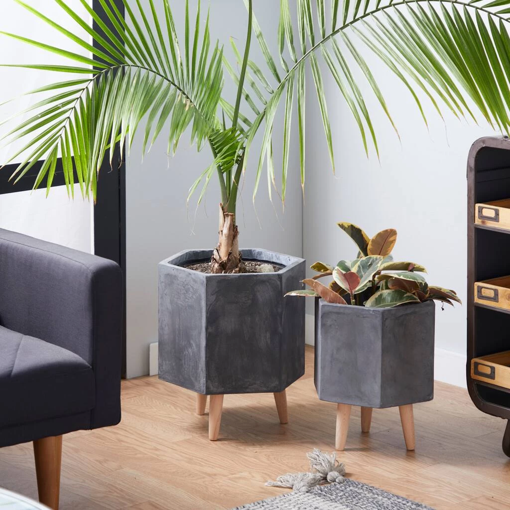 This planter set will definitely inspire you to add some greenery in your living room, dining room, patio, or garden. Anyone interested in designing a smart, chic living space knows how important mixing and matching is – especially when it comes to adding some greenery in your space. Use them as plant holders for faux botanical decorations, succulents, or indoor plants needing a minimal amount of water as these do not drain liquid. Each set comes with 2 indoor floor planters. This item ships in one carton.