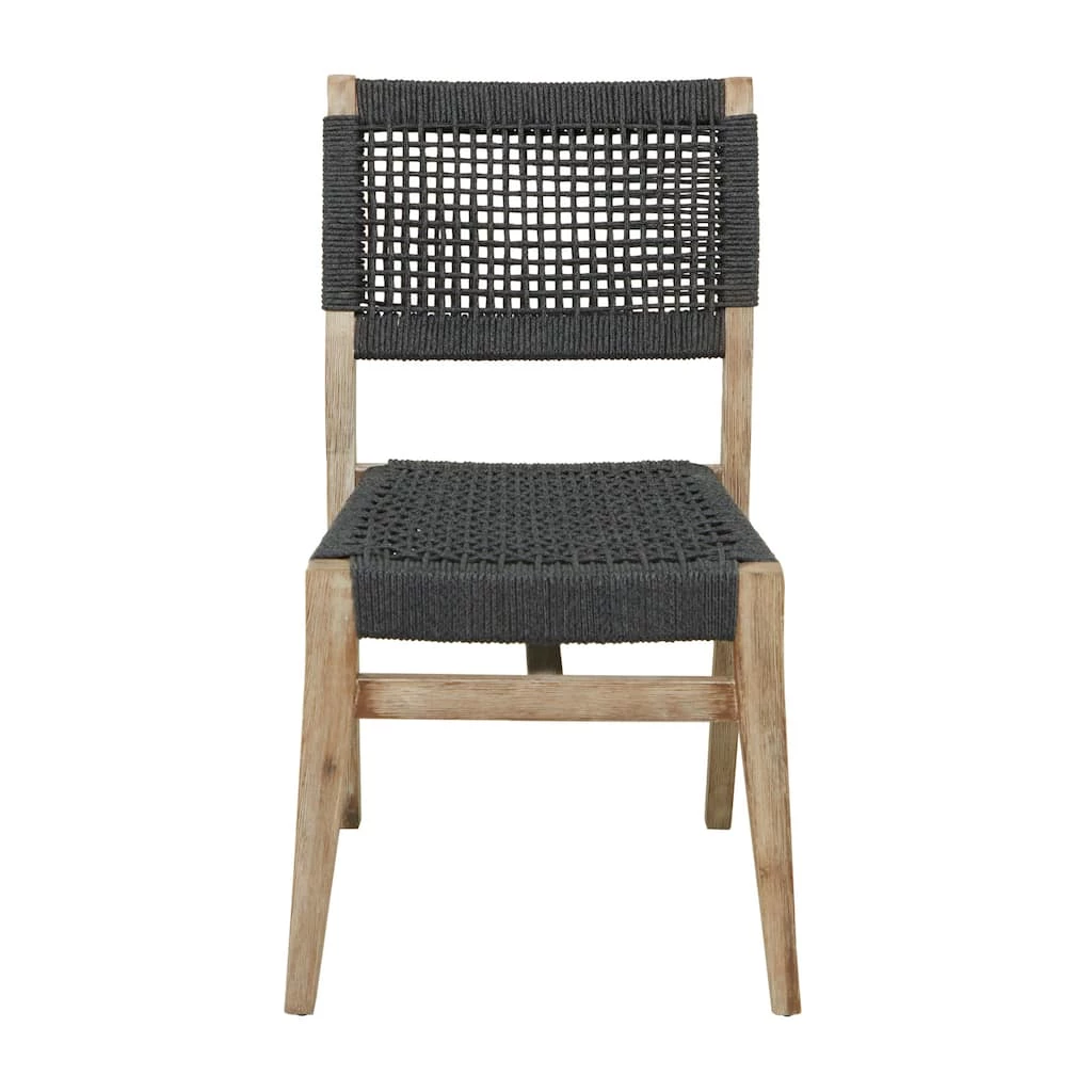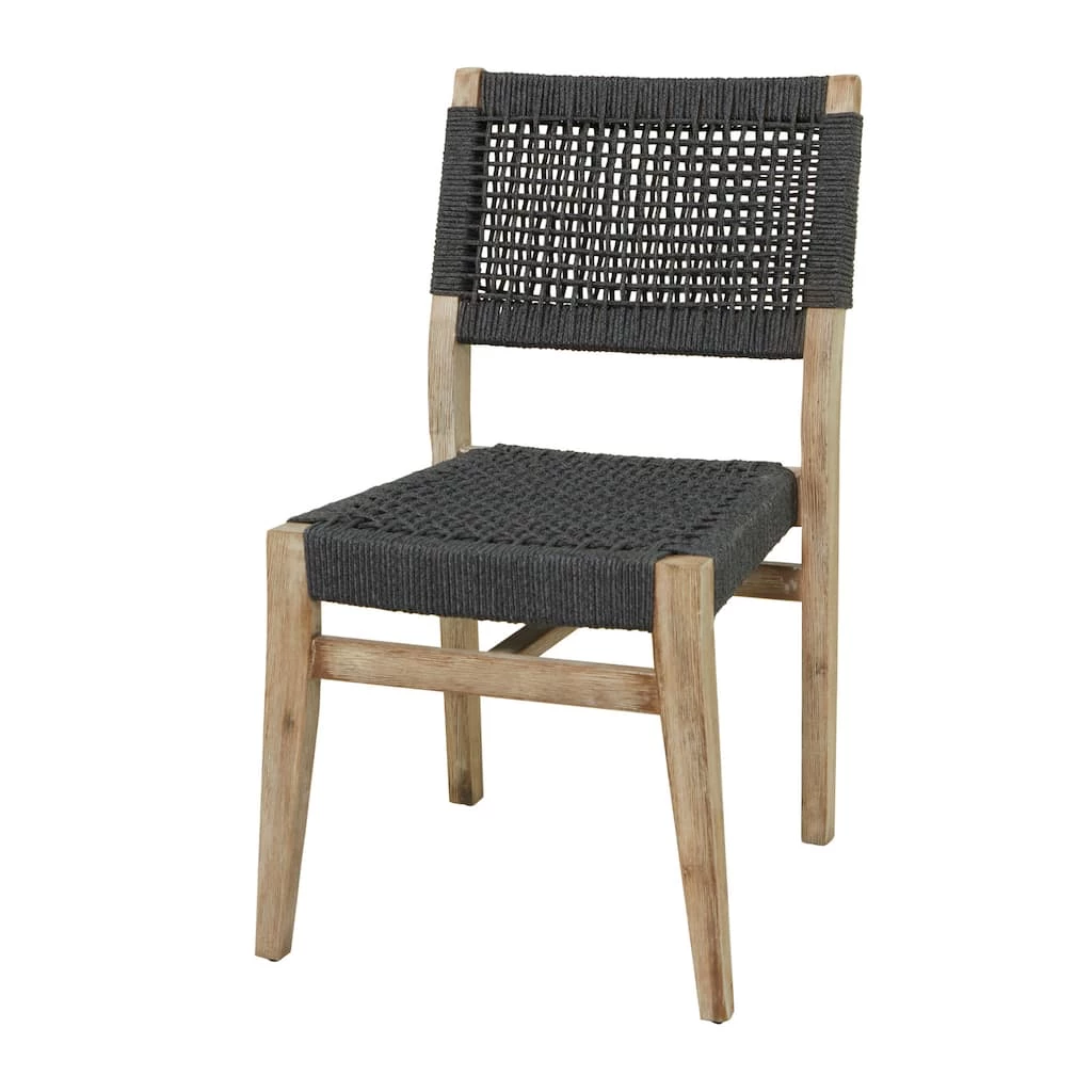 This outdoor dining chair is perfect for creating a focal point in your home with comfortable seating. Sturdy outdoor dining chair is perfect for creating a focal point in your home with comfortable seating. Take a breather and enjoy the beauty of nature in your backyard patios with this chic wooden dining chair. Designed with black rubber stoppers at the base that prevent scratching off floors and surfaces. This item ships in 1 carton. Suitable for indoor and outdoor use. Outdoor dining chair has a 250 lbs weight limit. Made in Vietnam. Use water with a simple cleaning solution on the wooden legs and wipe dirt off with a soft cloth, rag or paper towels.. This chair can accommodate 1 person. Contemporary design. Wood and rope are highly durable and are all resistant to water.
