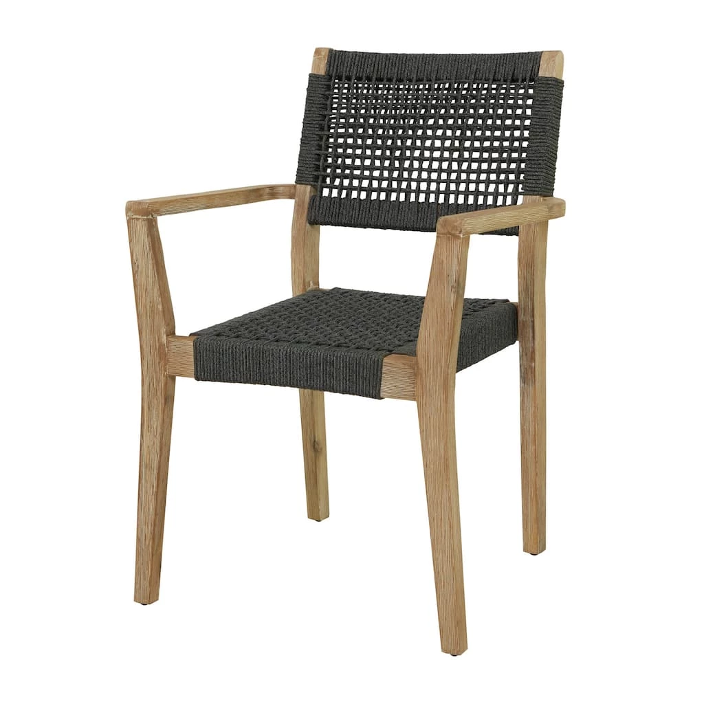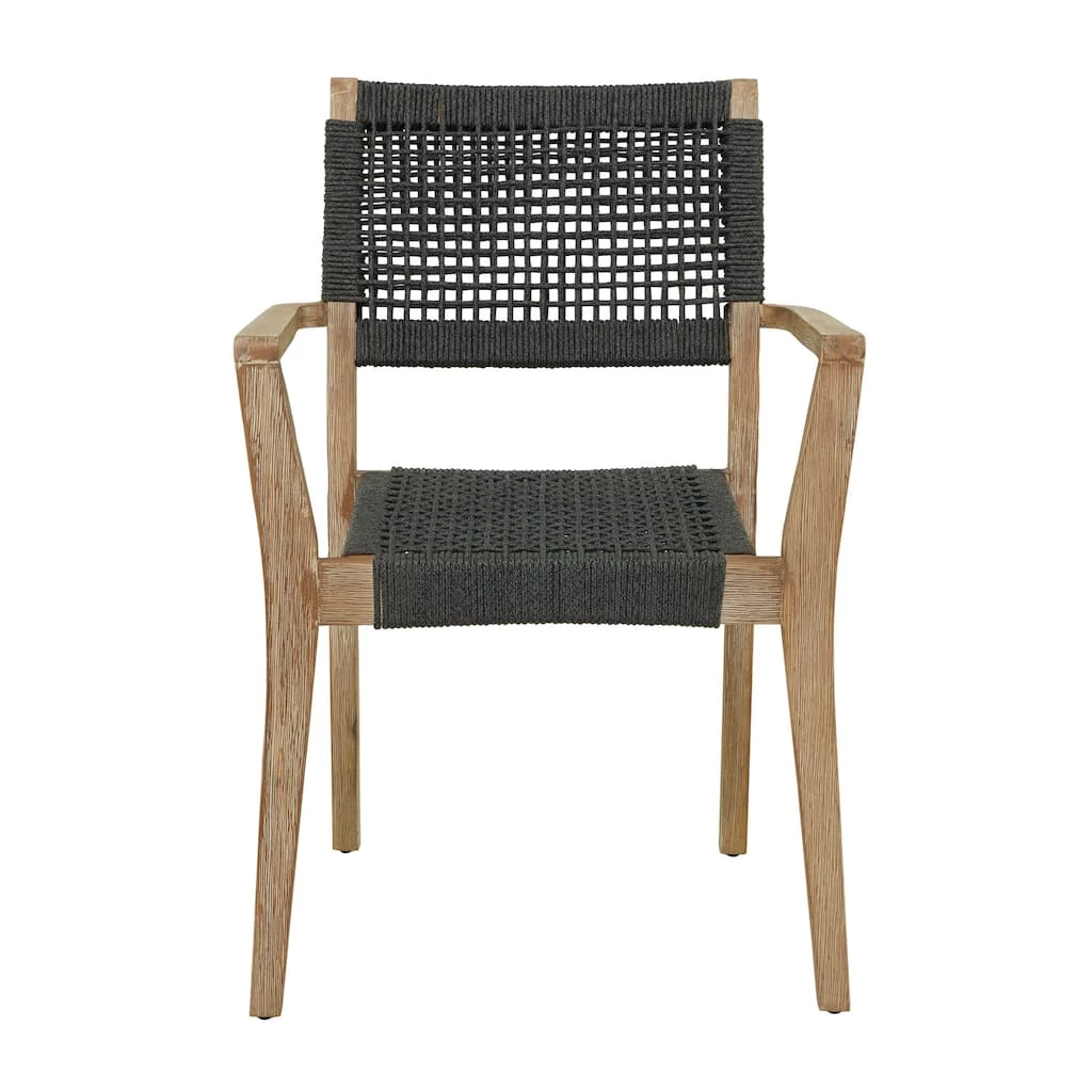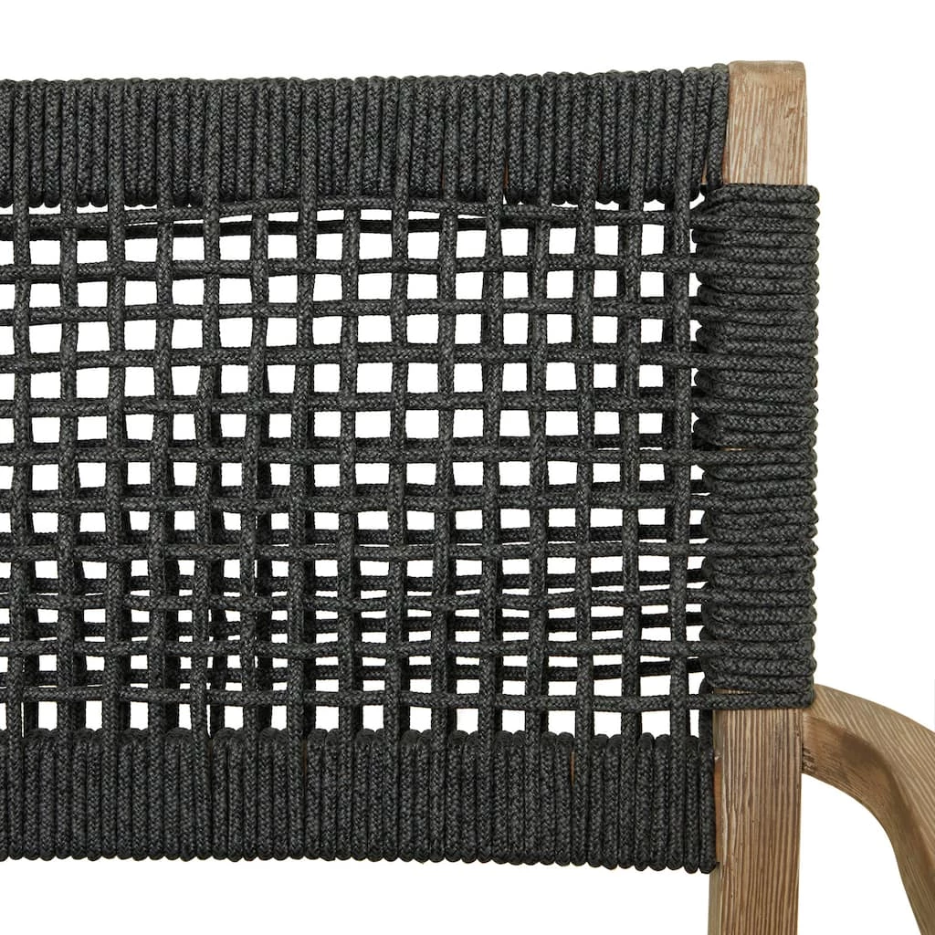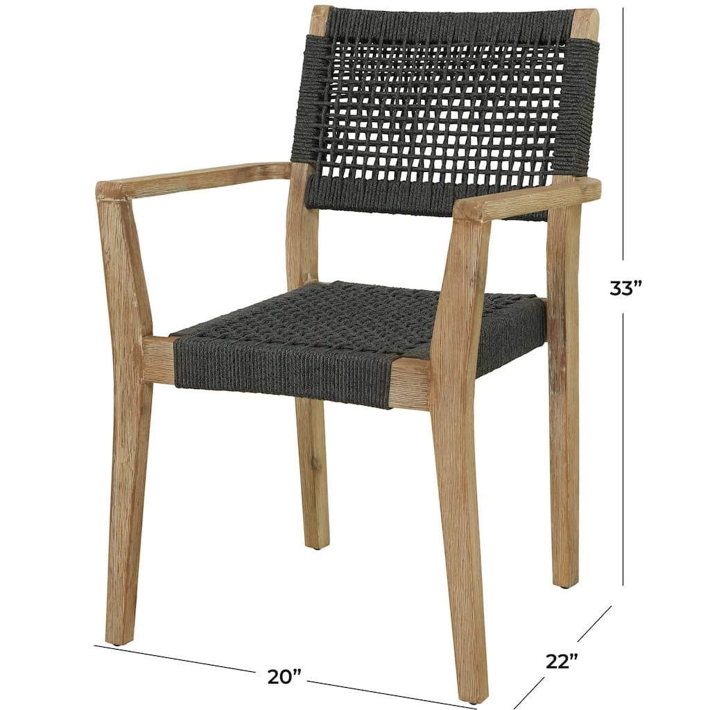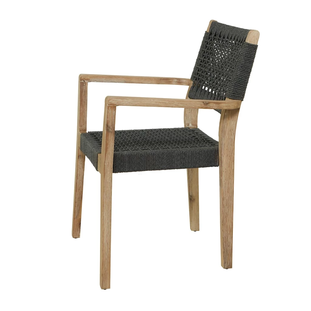 A relaxing dark gray wooden accent chair perfect for your living room, home office, bedroom or outdoor seating. This outdoor dining chair is perfect for creating a focal point in your home with comfortable seating. So take a load off and relax on this beautifully design outdoor dining chair. Designed with black rubber stoppers at the base that prevent sliding around as well as scratching the floor. This item ships in 1 carton. Suitable for indoor and outdoor use. Maximum weight limit is 250 lbs. Made in Vietnam. Use a mixture of dish soap and water, scrub along wood grain thoroughly with a brush and allow to dry. This chair sits one person. Contemporary setting.