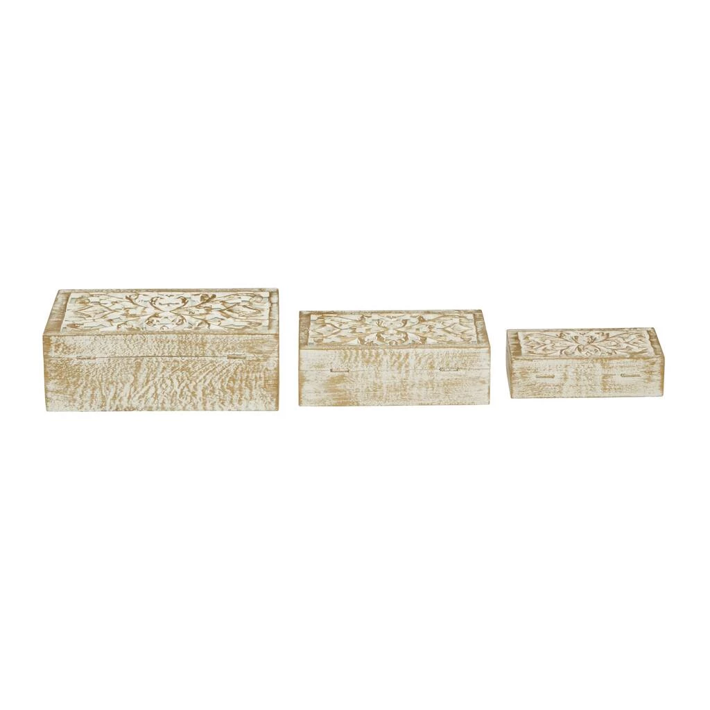 Let these accent piece boxes add a sense of style to your by displaying them on top of a shelf, countertop, mantel, or an accent table. Whether it’s jewelry, or knickknacks, let these boxes guard your treasure. Arrange these decorative boxes as standalone or as a set of accent pieces.