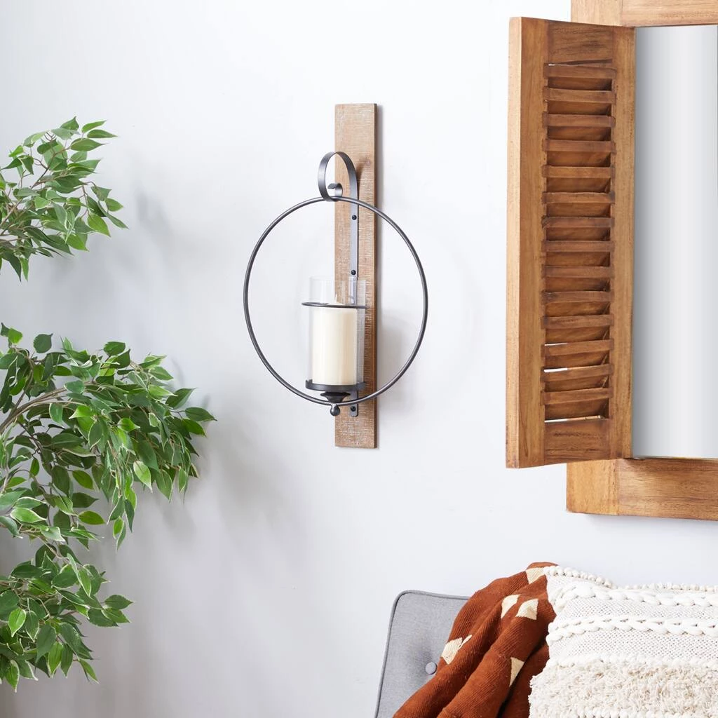 Budget π Farmhouse Brown Wood And Metal Wall Candle Holder, 24″ x 14″ x 6″ by Ivory and Iris π₯
