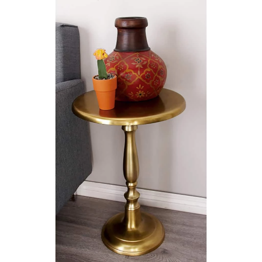 This tall, gold accent table makes a stylish addition to a hallway, den, living room, library, bedroom, or waiting areas of your home. A compact friendly table providing you with additional storage space any where in your home.