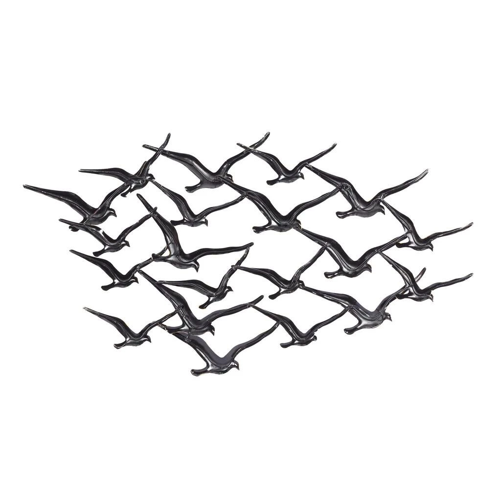 Come and relax for a bit as you stare outside your bedroom window and take a glimpse of the cheery birds flying across the sky and singing a song while nesting atop their favorite tree branches. You can bring this peaceful image back into your home as you display this large ‘Flock of Birds’ wall sculpture into your coastal themed walls and natural wooden furniture. This stunning wall art features an iron constructed image sculpture of twenty birds flying together in black and gold torched metal finishes. They are ideal as creative additions for homes with plenty of light and open spaces.