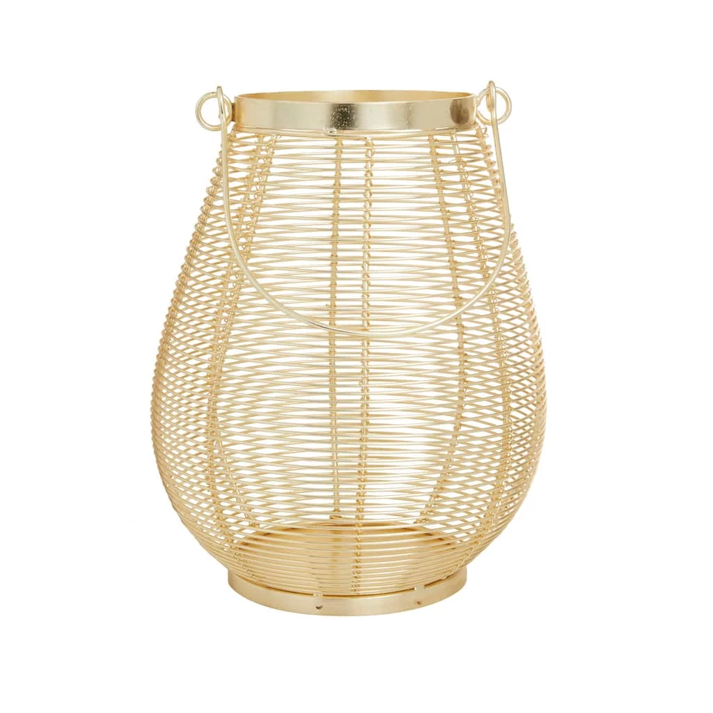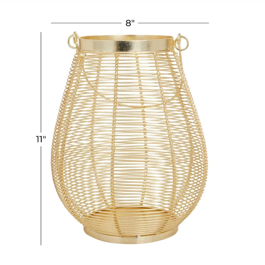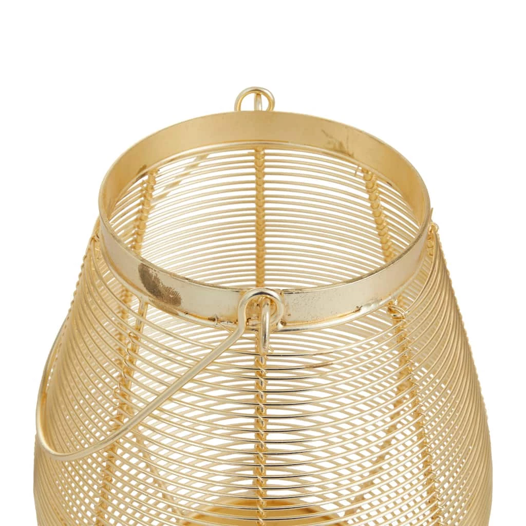 Infuse your space in the romantic candlelight glow that emits from this gold metal pillar candle lantern for home Delight your guests and make any occasion extra special by adding a lighted or flameless candle to this lantern. A sturdy and long lasting construction that for a long lasting display. A candle holder lantern that can accommodate both votive and pillar candles. This item comes shipped in one carton. Made in India. Glam theme. Suitable for indoor use only.