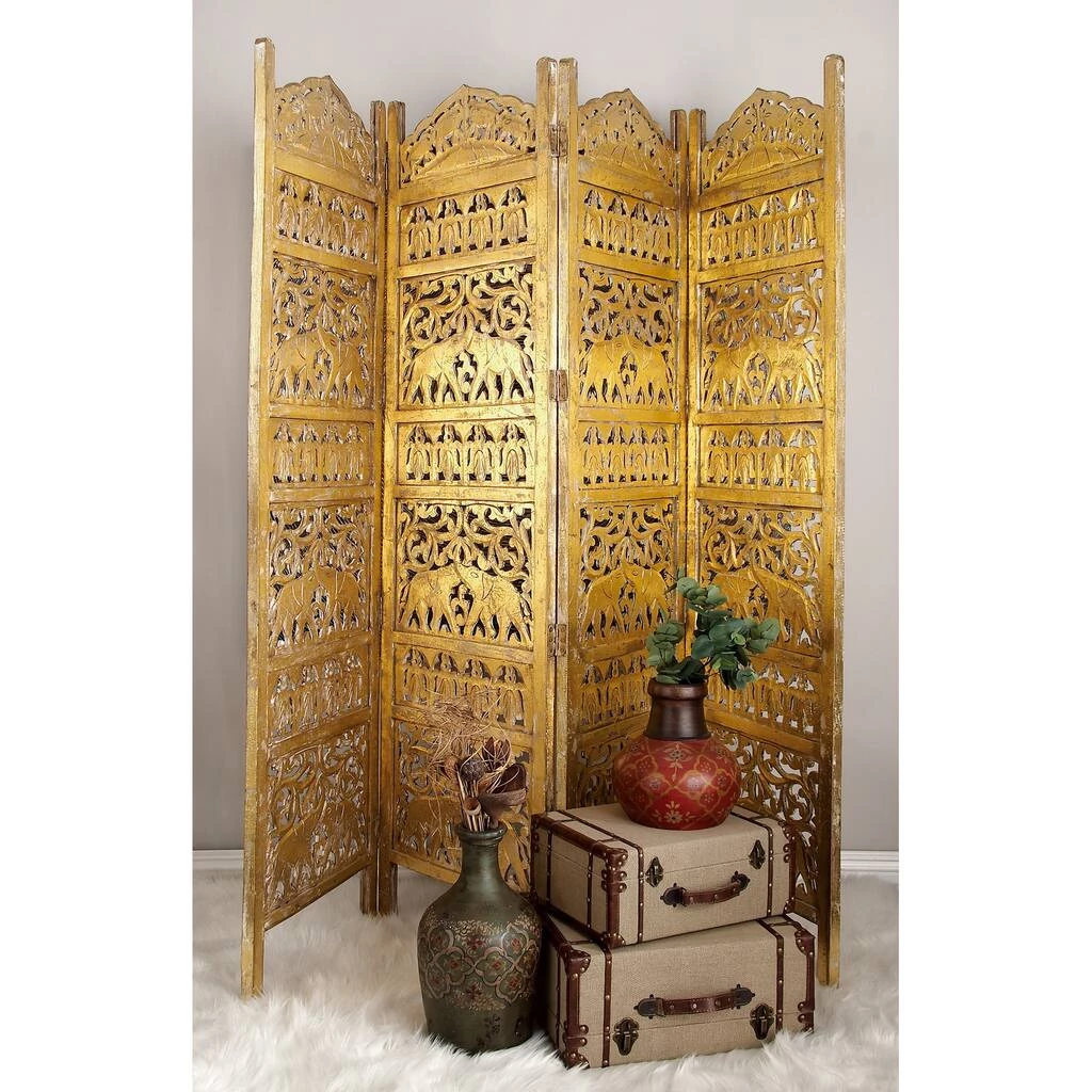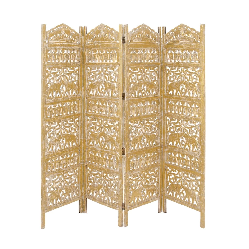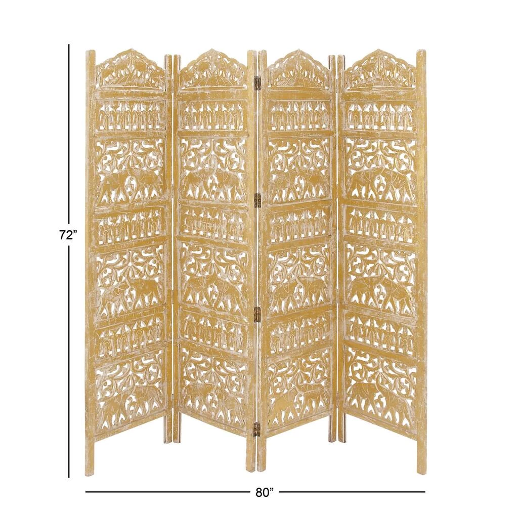 Providing function in a stylish way, these room dividers work double duty as privacy screens and standing art. Stand against a wall as a large accent piece, or in the middle of a room to add some privacy and divided space, this room divider is too style to hide away. This 4-panel room divider is see-through because of the traditional carvings.