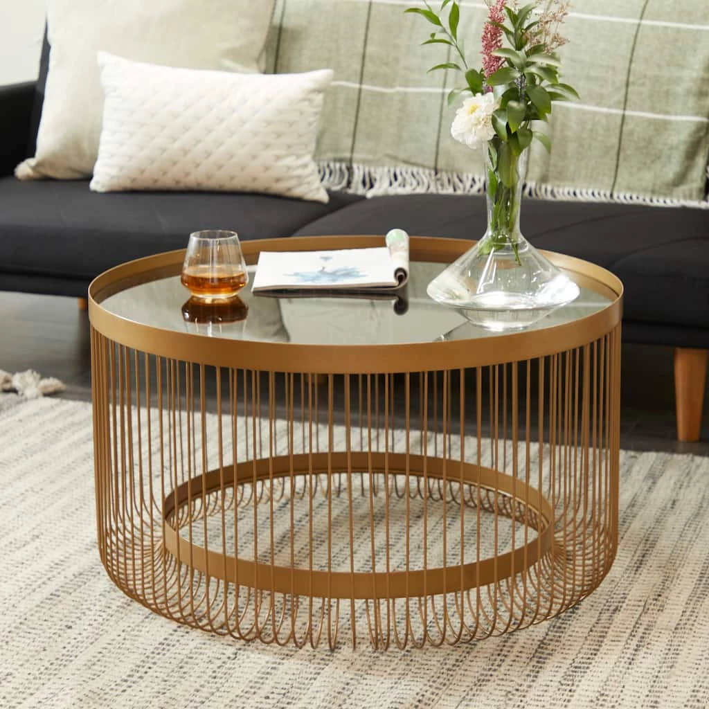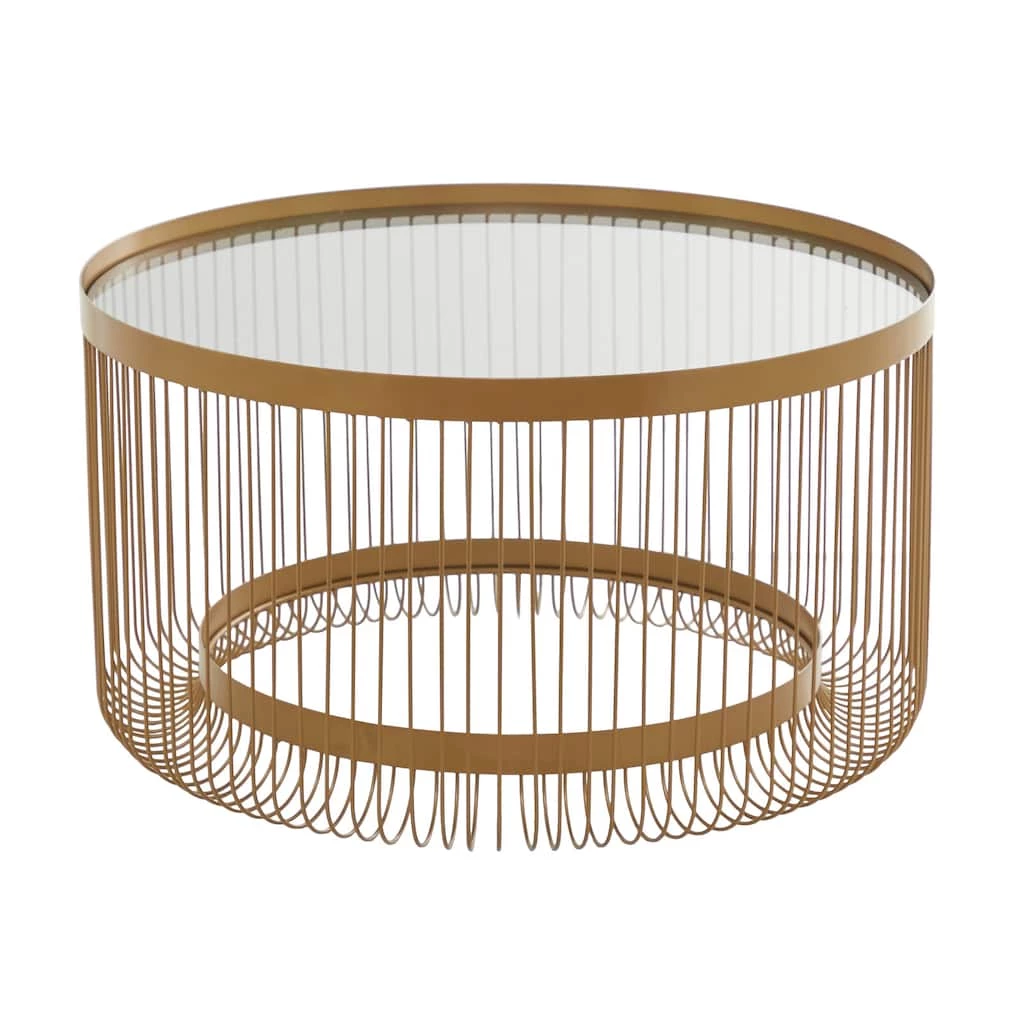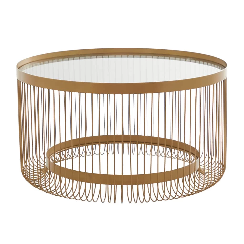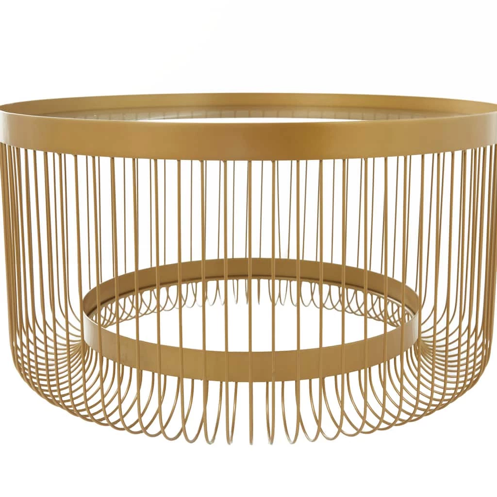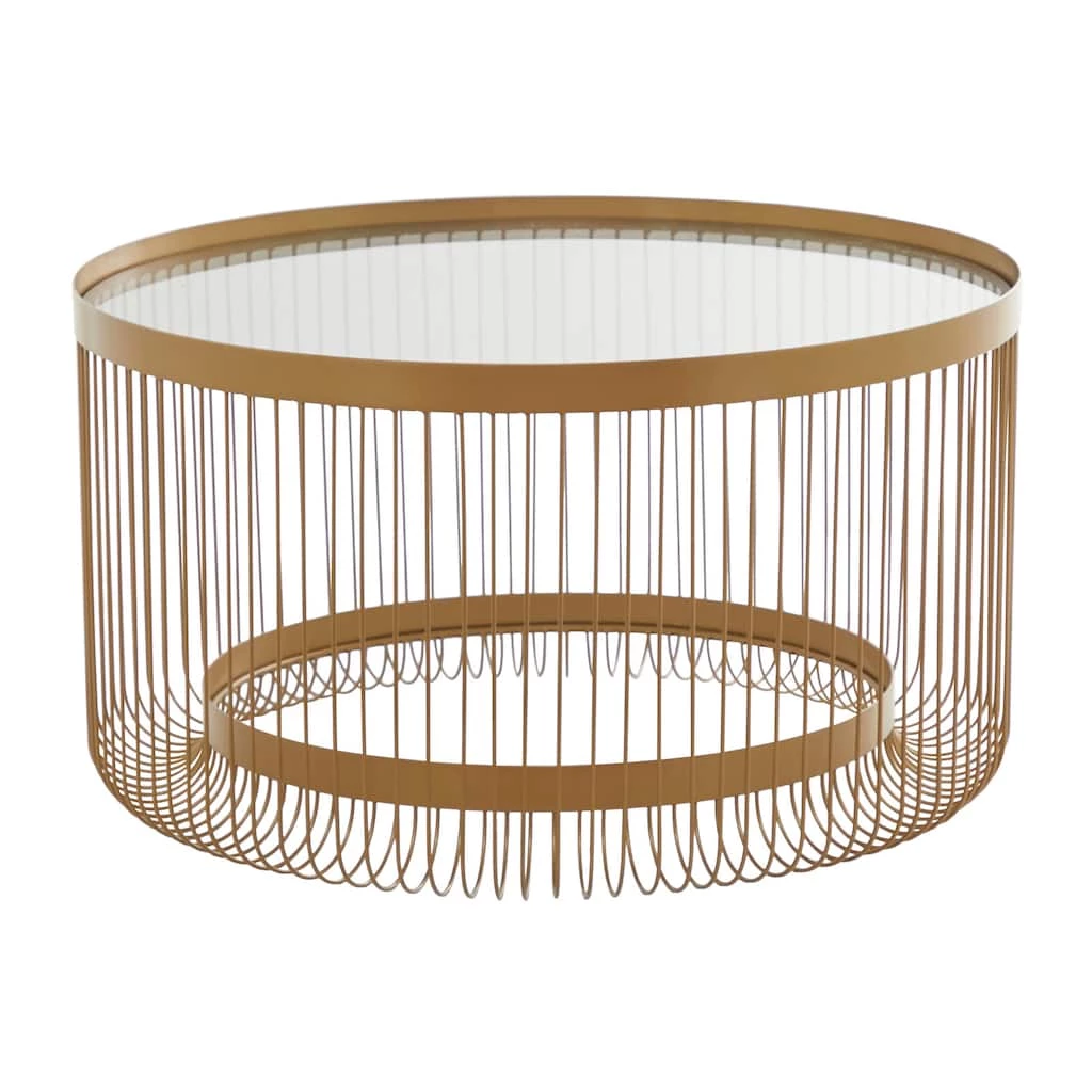 A spacious table top with a unique design offers an eye catching display from every angle. Useful and elegant, coffee tables are more than just a pretty piece of furniture in front of your couch. Introduce a new element into your living area with this gold coffee table with open base that can add storage and the right dose of elegance to your interior. This item ships in 1 carton. Suitable for indoor use only. Maximum weight limit is 100 lbs.. This item has 2 shelves. Contemporary Theme.