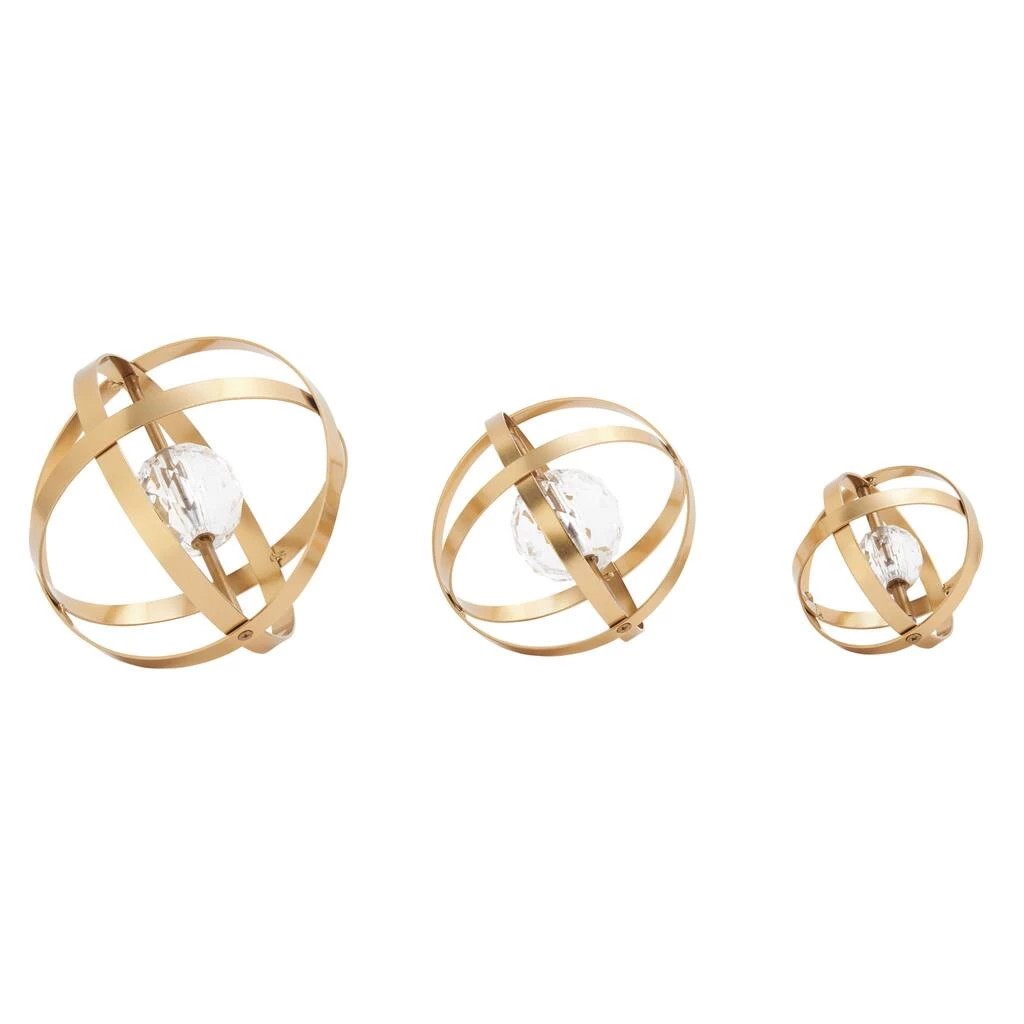 These dazzling table dΓ©cor orbs make a big impact. Each metal orb is crafted from iron strips that are curved and wound into an orb designs with polished metallic gold finishes. Inside each, a sparkling faux crystal is suspended in the center.
