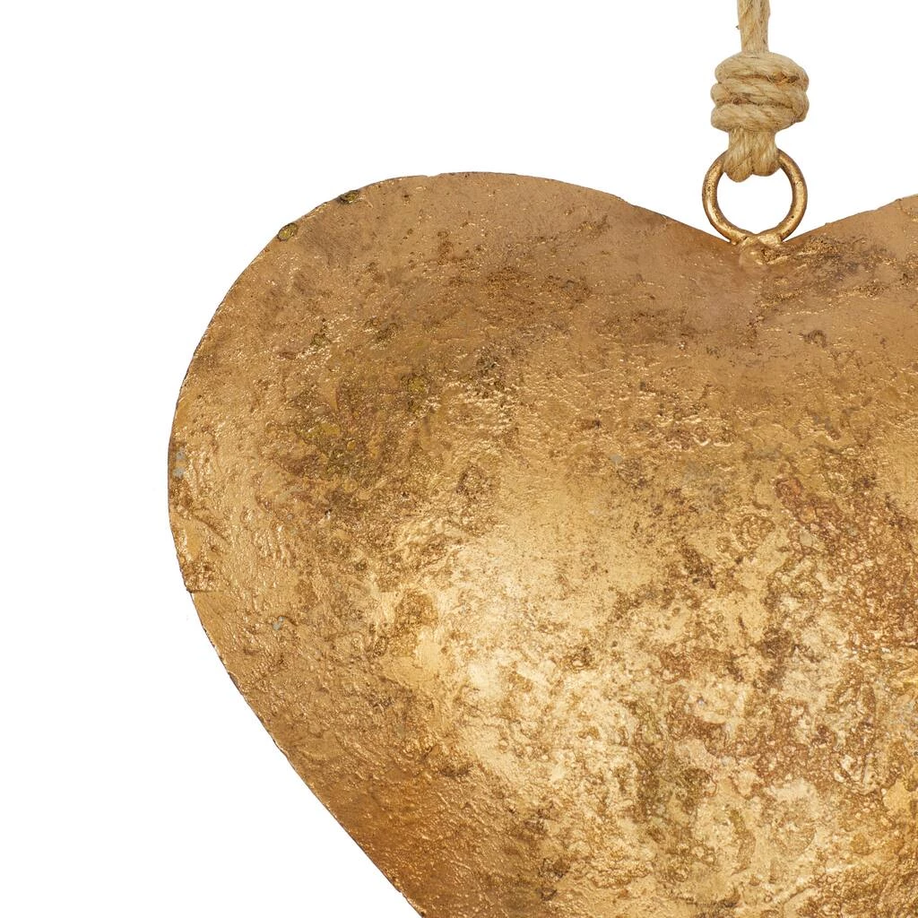 Let your rustic-styled home illuminate infinite love and soft, romantic chimes all year long with this sweet set of large gold metal heart windchimes. This set comes with three heart-shaped iron windchimes with small hanging ropes in weathered gold finish.