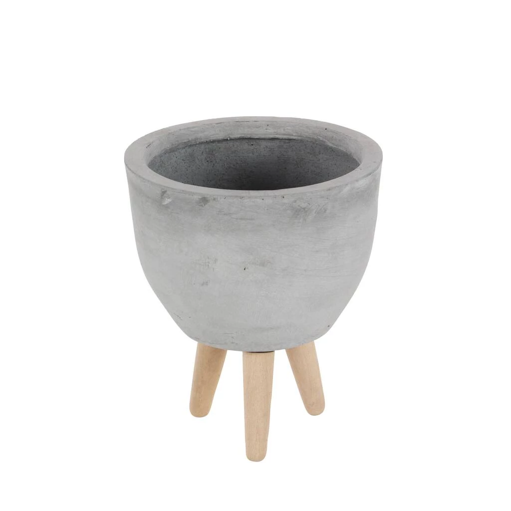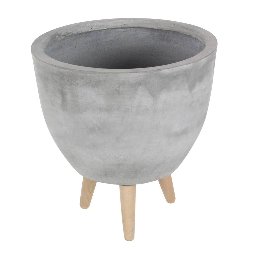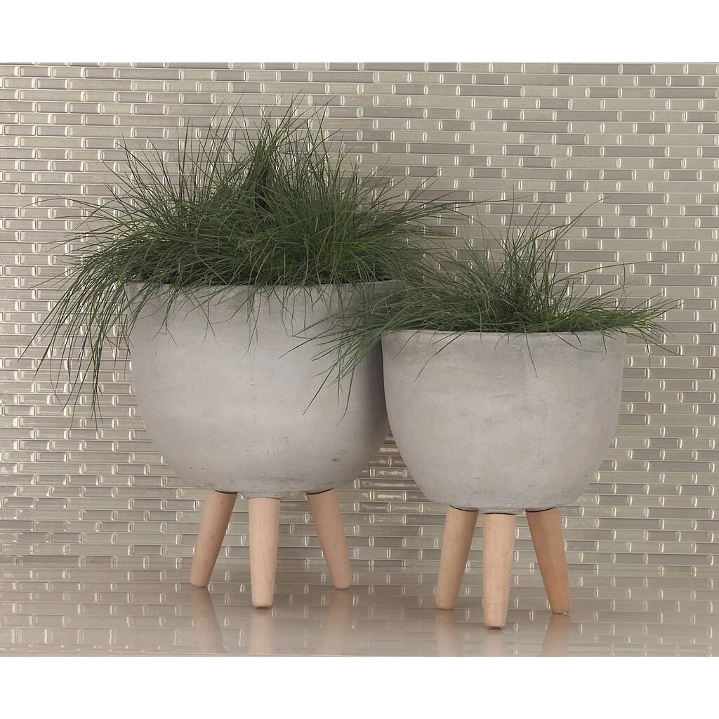 This set of fiberclay and wood planters brings tranquility to your space by allowing you to fill them with plantsβhence it promotes wellness and creates an immediate feeling of relaxation. These decorative planters are sure to add bundles of charm to your home. Beautifully detailed, they feature round-shaped pots in matte gray finish and slanted legs for extra support. These planters are made out of fiber clay, fiberglass, and wood with solid construction, offering durability and stability. Jazz up contemporary themed spaces using this set of charming accent pieces that are ideal for outdoor use. This set includes three planters and ships in one carton.Β Made in China.