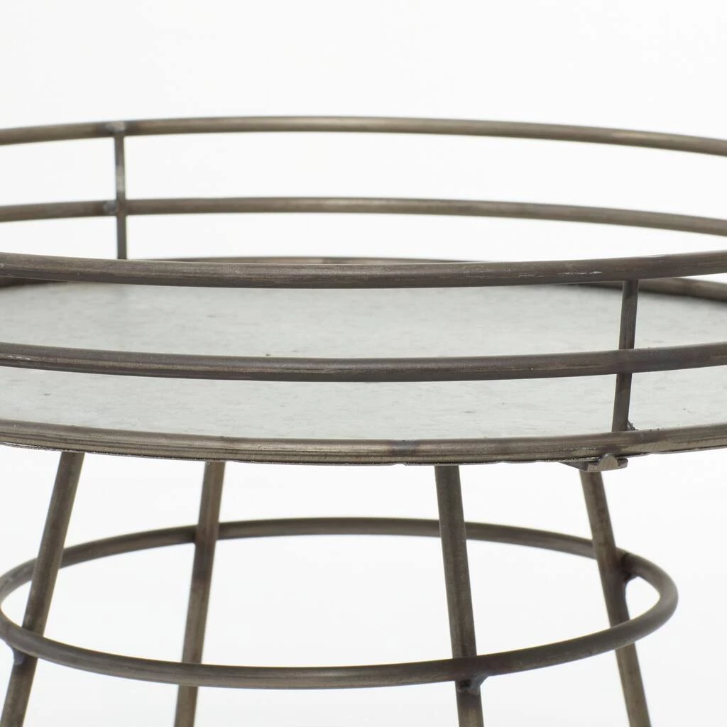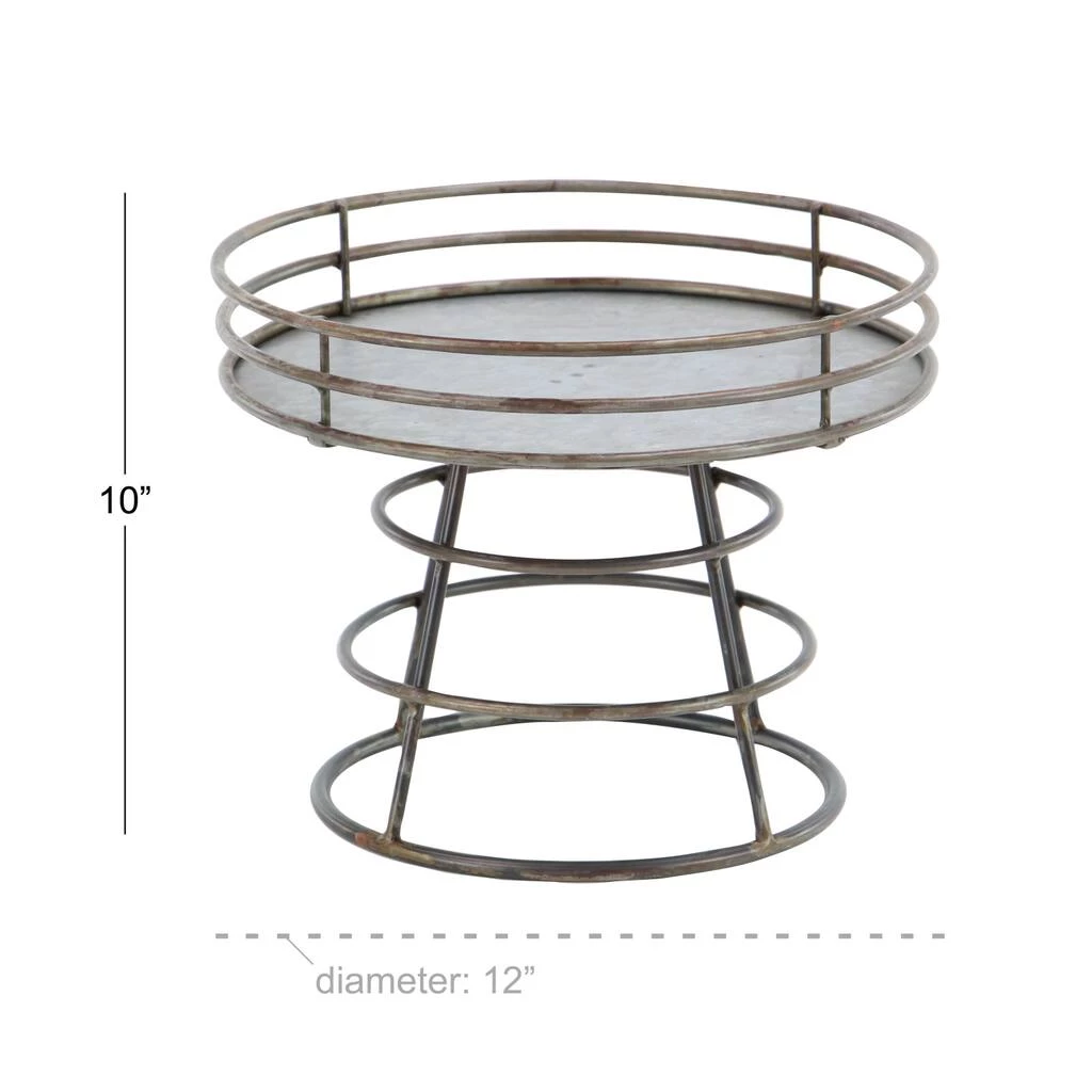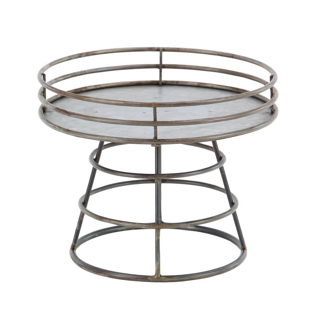 Perfect for displaying small dΓ©cor in a farmhouse-style room. Designed with three round bands with gray sturdy platform. Features an open round base solid pattern. Designed with black rubber stoppers at the base that prevent scratching furniture and table tops, as well as sliding around. It features three round bands with gray sturdy platform.