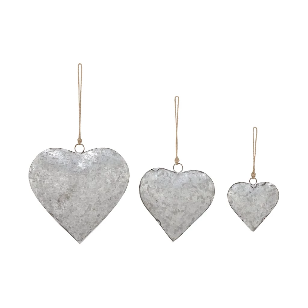 Brighten up your patio, lawn, or garden with this set of gray iron heart wind chimes. Natureβs own music sounds best when accompanied by the gentle tones of these outdoor accent pieces that feature three gray heart-shaped wind chimes in different sizes. This set flaunts metal rings with thin jute rope hangers for hassle-free hanging. Add a twist to your rustic themed home by using this set of accent decors that will surely create a delightful accessory for your outdoor space.