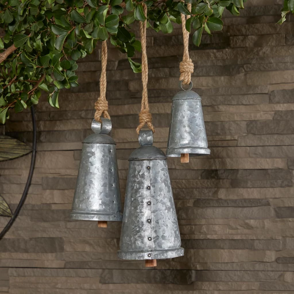 Natureβs own music sounds best when accompanied by the gentle tones of these outdoor accent pieces that feature galvanized gray tapered bells in different sizes, mango wood clappers, and brown jute rope hangers. Add a twist to your rustic themed home by using this set of accent decors that will surely create a delightful accessory for your outdoor space. This wind chime set will extend a warm welcome to all your guests and can also make a great housewarming gift.