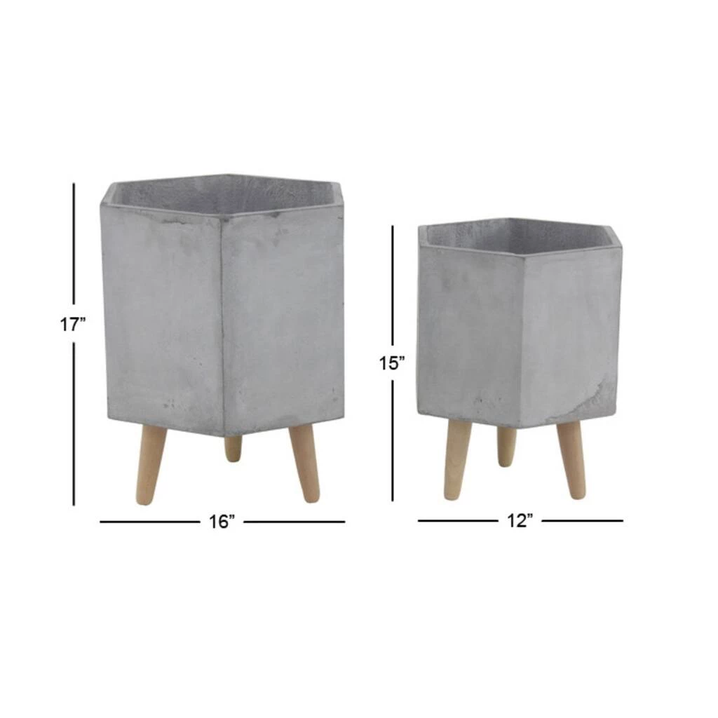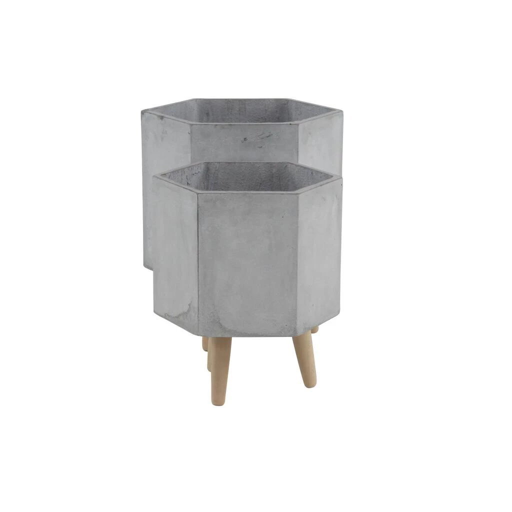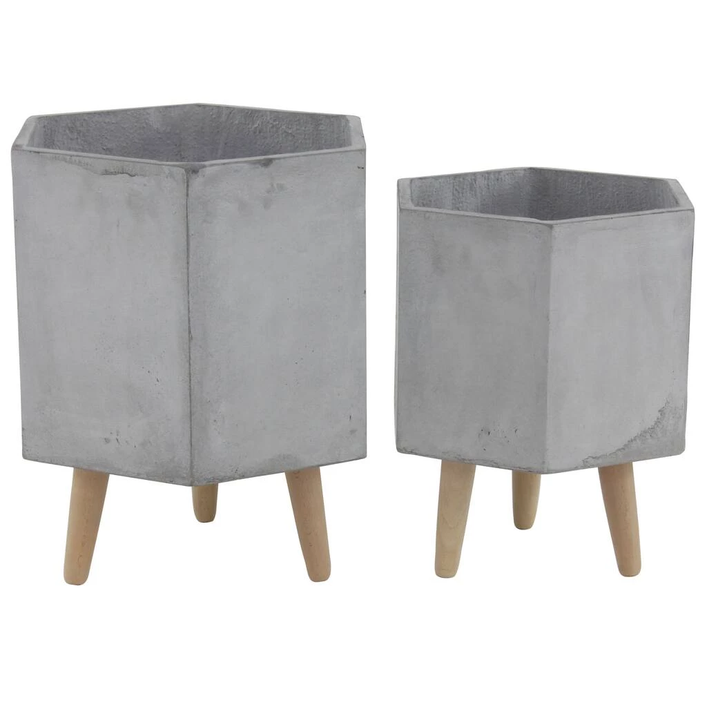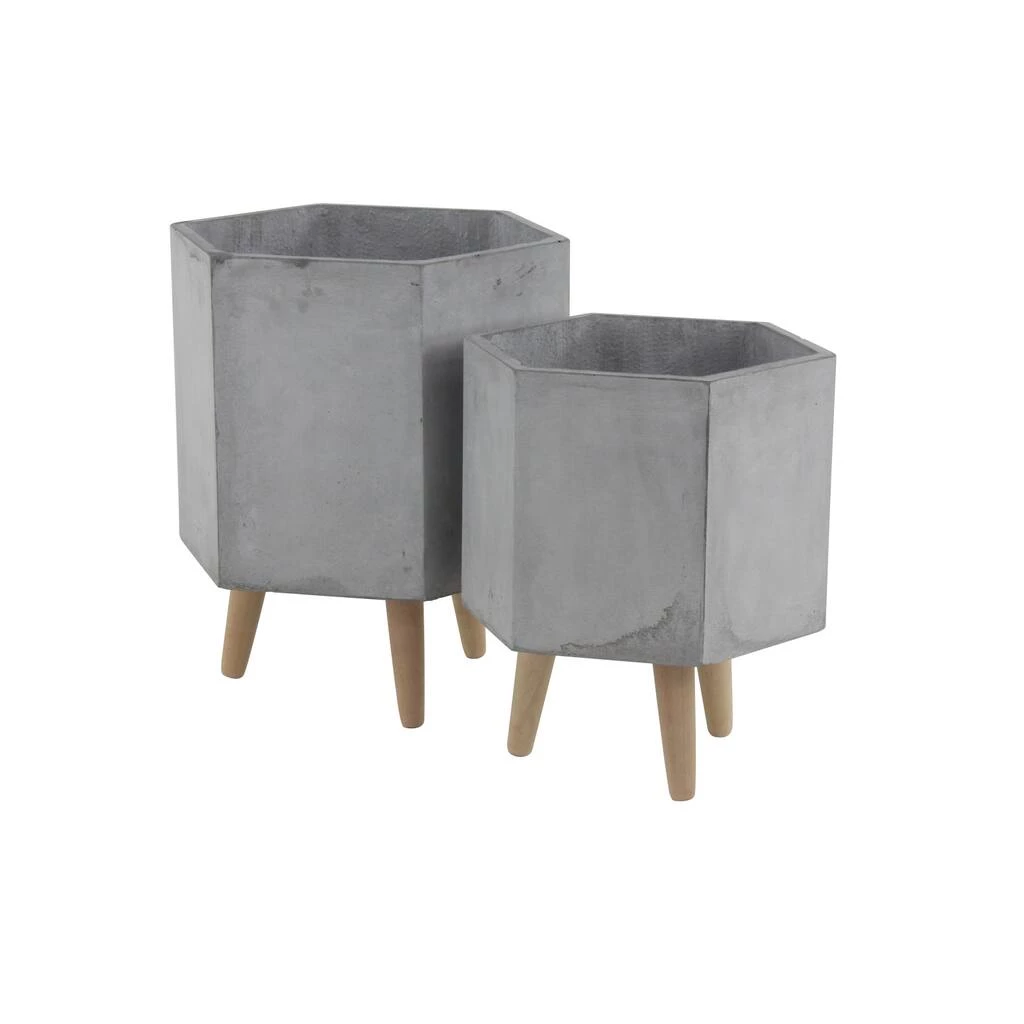 These decorative planters are sure to add bundles of charm to your home. Beautifully detailed, they feature hexagon-shaped pots in a matte gray finish and beige short legs for extra support. This contemporary accent dΓ©cor is great for both indoor and outdoor use to display your favorite flowers and plants.