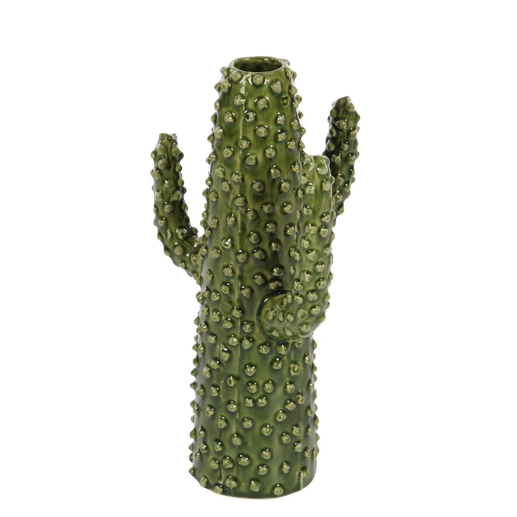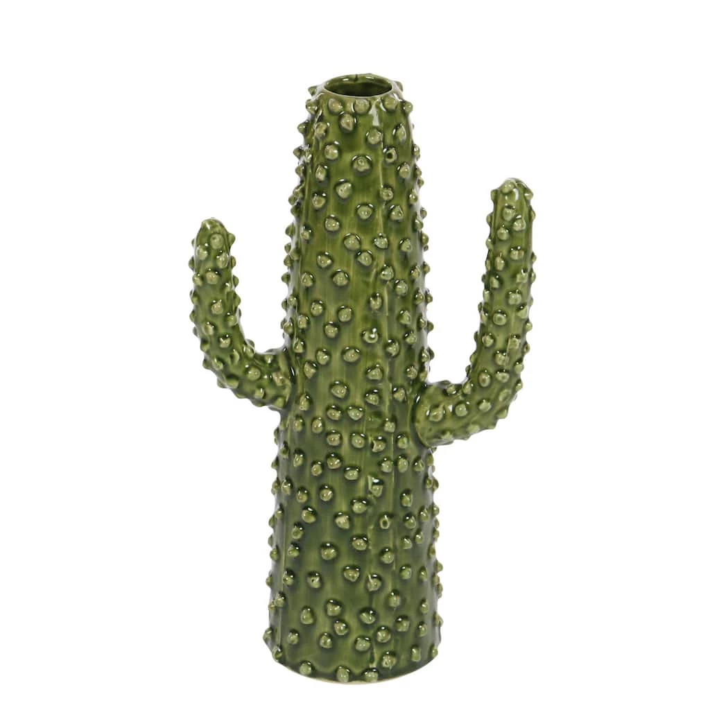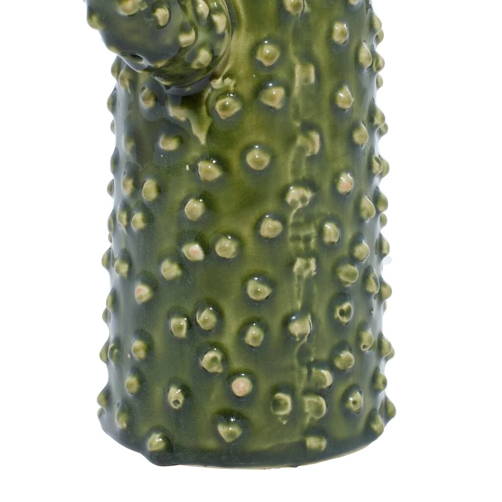 Bring the desert vibe in your home with this eclectic style green ceramic cactus vase. This two-branched desert flora features a unique textured design that mimics the thorns a cactus should have out of ceramic detailing. The wild cactus green finish further adds to that authentic effect. The vase also features a small rounded opening at the top for other decorative pieces. Place this on top of your tables or wall shelves to achieve that sense of the wild west in your living space. Suitable for indoor use only. This table vase does not have drain holes. This ceramic vase has a 1″ mouth opening. This item comes shipped in one carton.