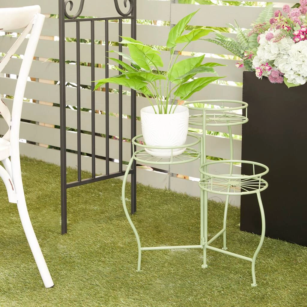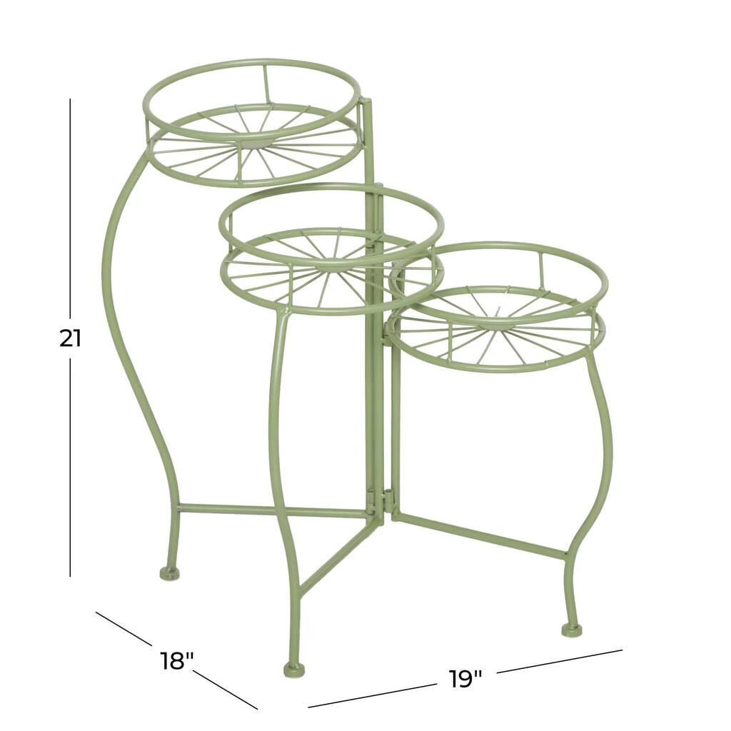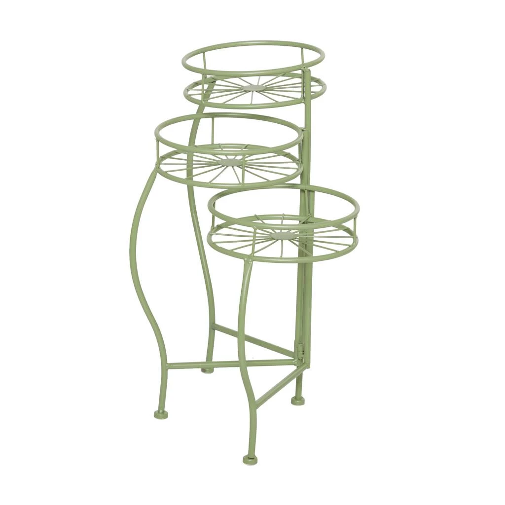 Add a cottage core vibe within your outdoor patios and garden areas as you decorate your corners with this foldable moss green metal plant stand. A space saving solution to store your plants in a playful yet practical way. This striking plantstand can hold your luscious greenery or display your most prized dΓ©cor for an elevated look. Designed with rubber footing at the base that prevent scratching, anti tipping, as well as sliding around. This item comes shipped in one carton. Suitable for indoor and outdoor use. Avoid using abrasive cleaning pads or detergents, use a sponge with mild soap and warm water, then rinse with a garden hose. This plantstand is made from solid iron construction with protective coating making it impervious to the elements with anti-corrosive property. Transitional style.