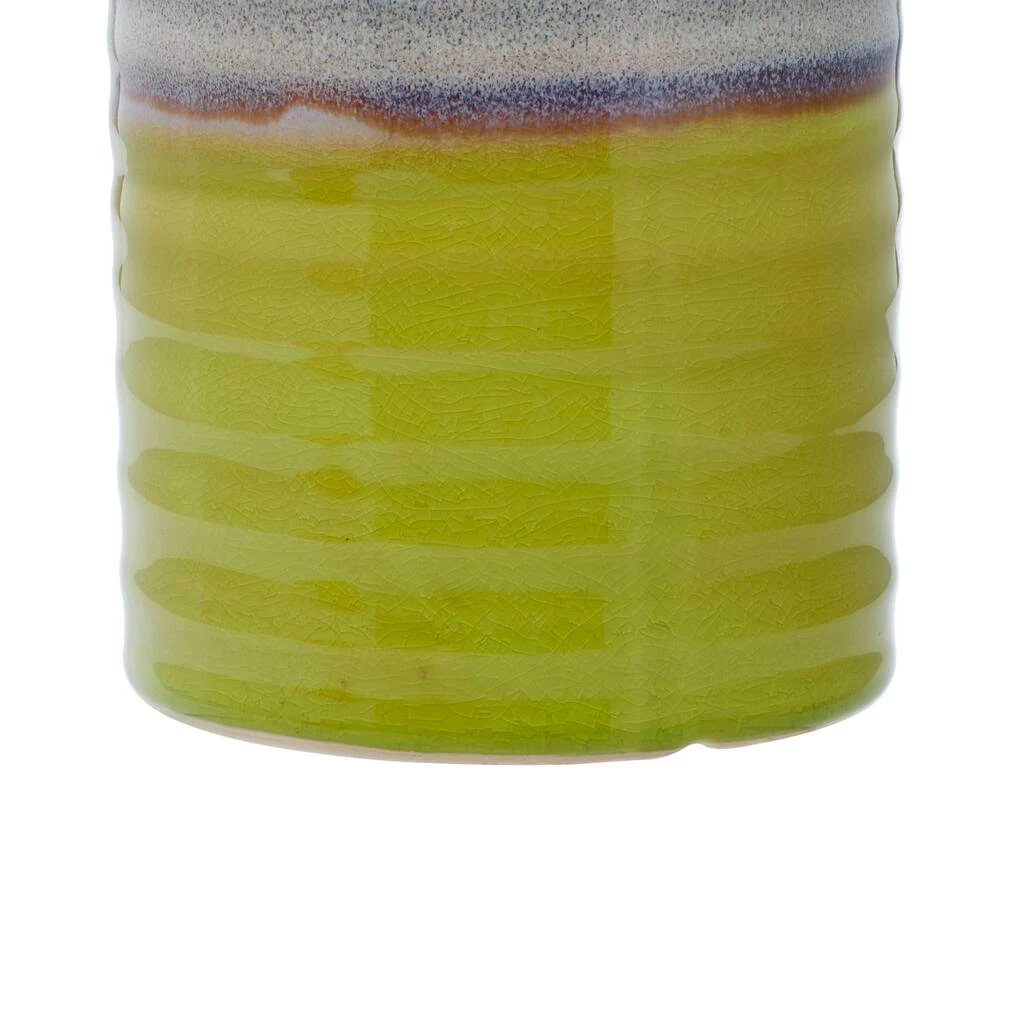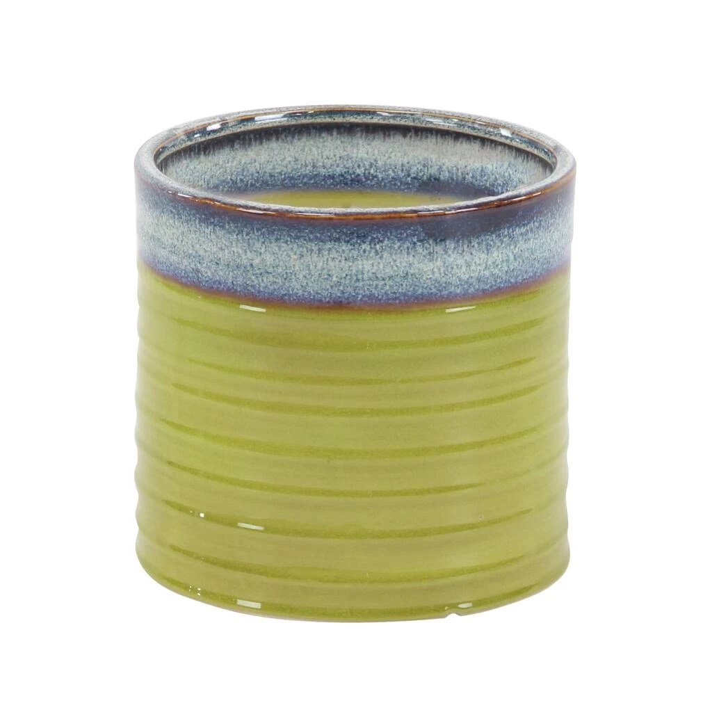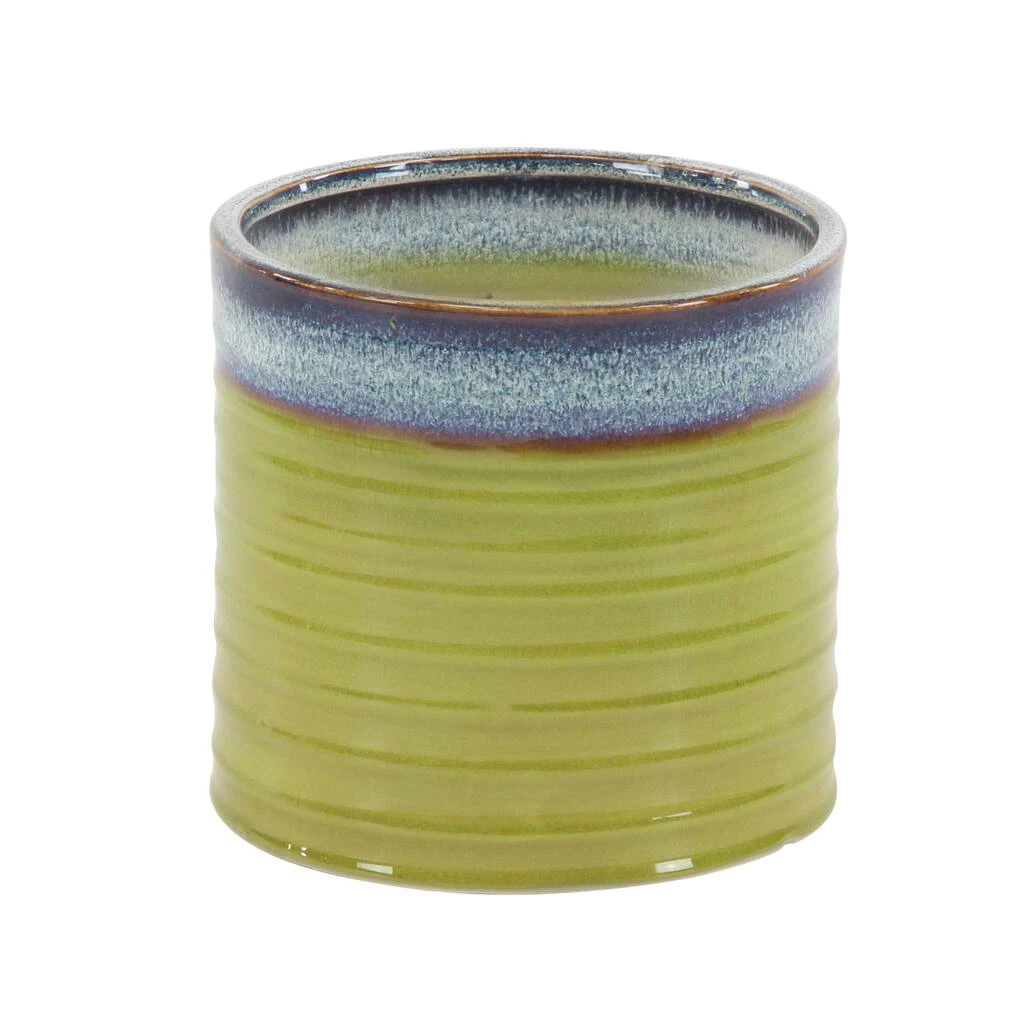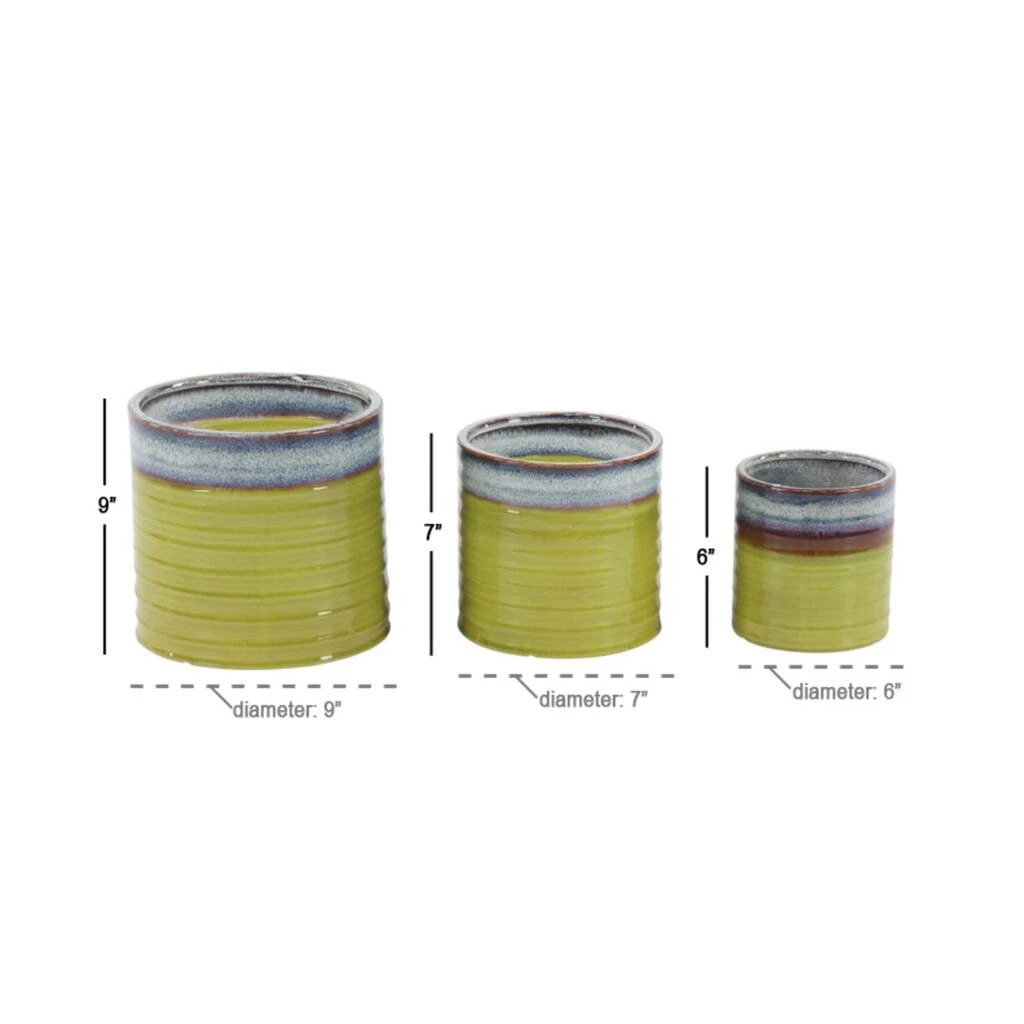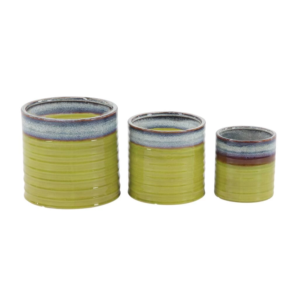 These decorative planters are sure to add bundles of charm to your home. Beautifully detailed, they feature lime green cylindrical pots with horizontal ribbed detailing. These planters are made out of porcelain with solid construction, offering durability. Jazz up contemporary themed spaces using this set of charming accent pieces that are ideal for outdoor use. Use as plant holders or accent pieces in your contemporary-styled entryway, living room, kitchen, or patio.